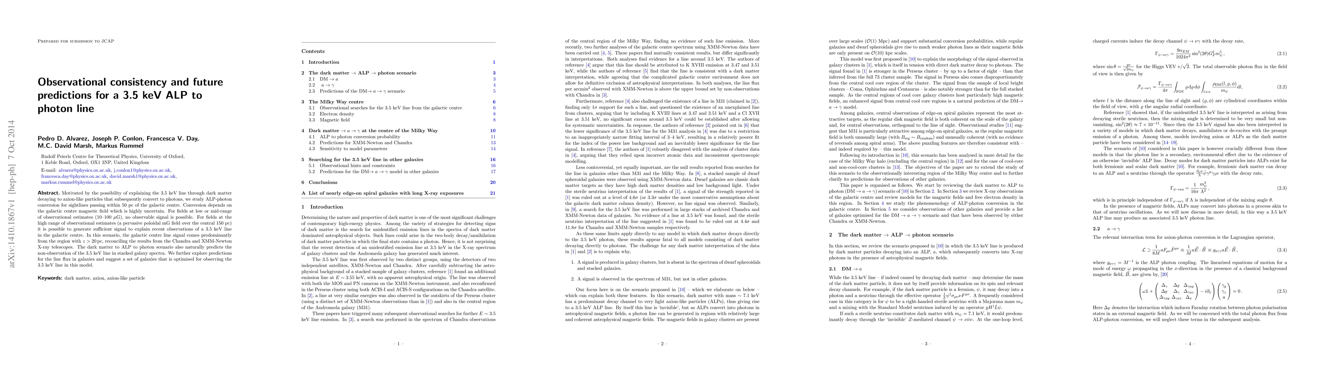 A 3.5 keV line in the galactic centre could be explained by dark matter decaying to axion-like particles that convert to photons, with magnetic fields playing a crucial role. The researchers suggest specific galaxies for observing this phenomenon.