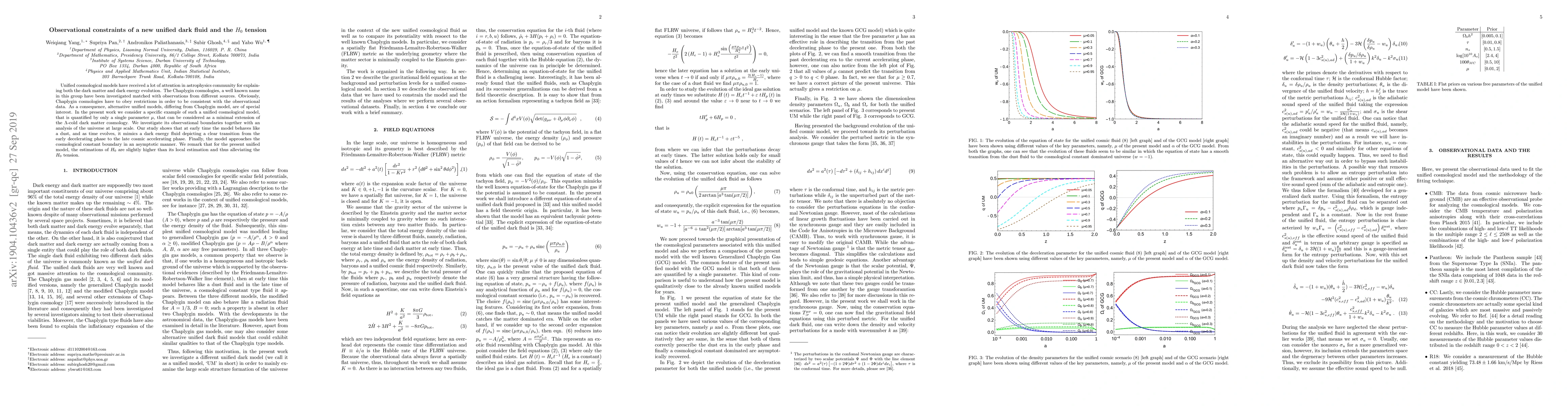 Unified cosmological models have received a lot of attention in astrophysics community for explaining both the dark matter and dark energy evolution. The Chaplygin cosmologies, a well known name in this group have been investigated matched with observations from different sources. Obviously, Chaplygin cosmologies have to obey restrictions in order to be consistent with the observational data. As a consequence, alternative unified models, differing from Chaplygin model, are of special interest. In the present work we consider a specific example of such a unified cosmological model, that is quantified by only a single parameter $\mu$, that can be considered as a minimal extension of the $\Lambda$-cold dark matter cosmology. We investigate its observational boundaries together with an analysis of the universe at large scale. Our study shows that at early time the model behaves like a dust, and as time evolves, it mimics a dark energy fluid depicting a clear transition from the early decelerating phase to the late cosmic accelerating phase. Finally, the model approaches the cosmological constant boundary in an asymptotic manner. We remark that for the present unified model, the estimations of $H_0$ are slightly higher than its local estimation and thus alleviating the $H_0$ tension.