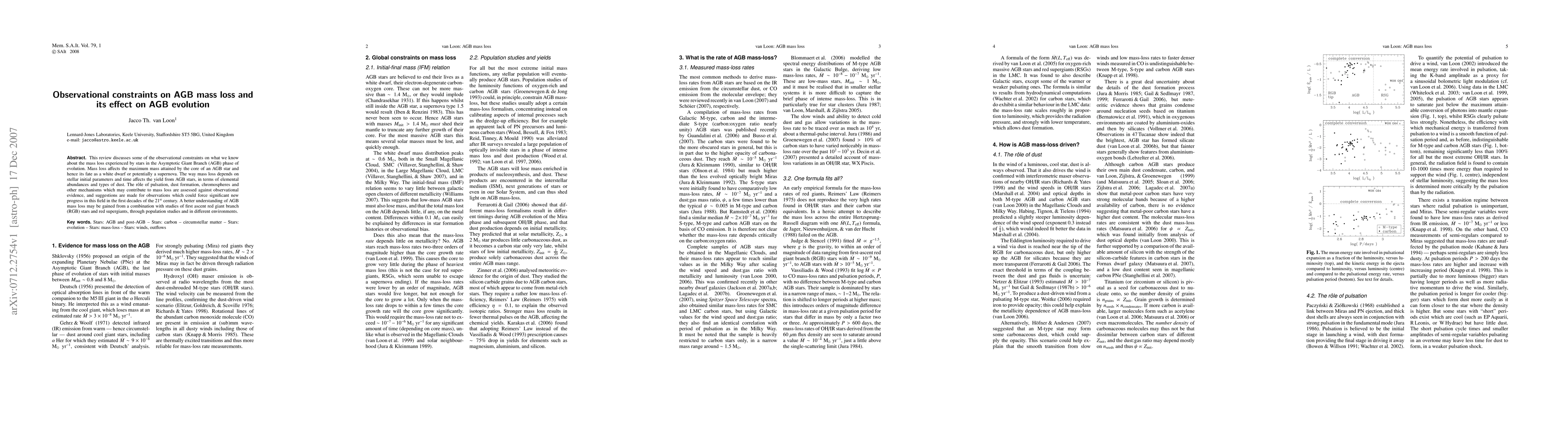 This review examines observational constraints on mass loss in Asymptotic Giant Branch (AGB) stars, highlighting its impact on core mass and stellar fate, and assesses mechanisms contributing to mass loss. Future progress may hinge on combined studies of AGB, first ascent red giant branch stars, and red supergiants.