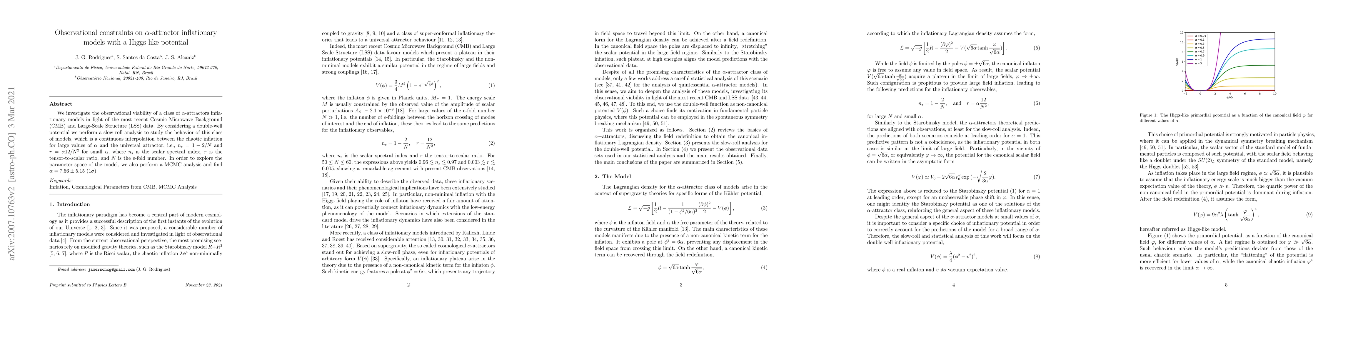 This paper examines the observational viability of $\alpha$-attractor inflationary models with a Higgs-like potential, using recent CMB and LSS data. The study finds $\alpha=7.56\pm 5.15$ ($1\sigma$) through a slow-roll analysis and MCMC, exploring the parameter space between chaotic inflation and the universal attractor.