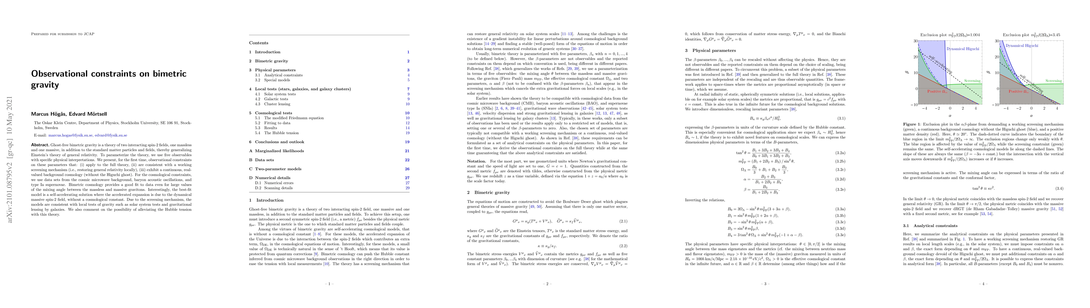 This paper presents observational constraints on ghost-free bimetric gravity, showing it fits cosmological data well and is consistent with local gravity tests, while offering a self-accelerating universe without a cosmological constant. The study also discusses the potential to alleviate the Hubble tension.