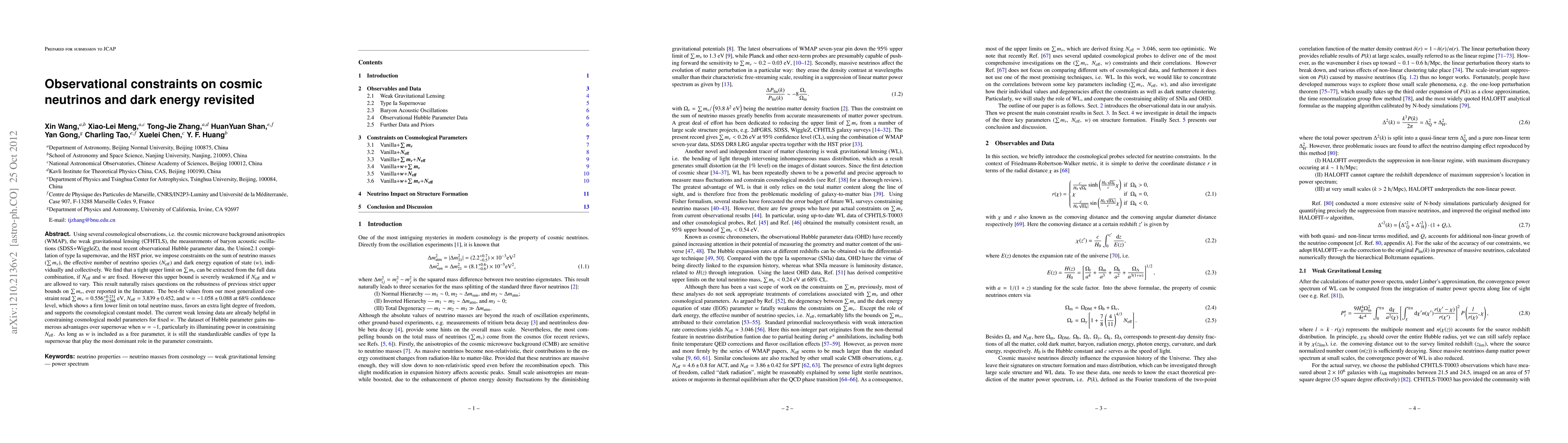 This paper revisits observational constraints on cosmic neutrinos and dark energy using multiple cosmological observations. It finds a tight upper limit on neutrino mass when other parameters are fixed, but this limit weakens when they are allowed to vary, questioning previous strict upper bounds. The best-fit values suggest a lower limit on total neutrino mass, an extra light degree of freedom, and support for the cosmological constant model.