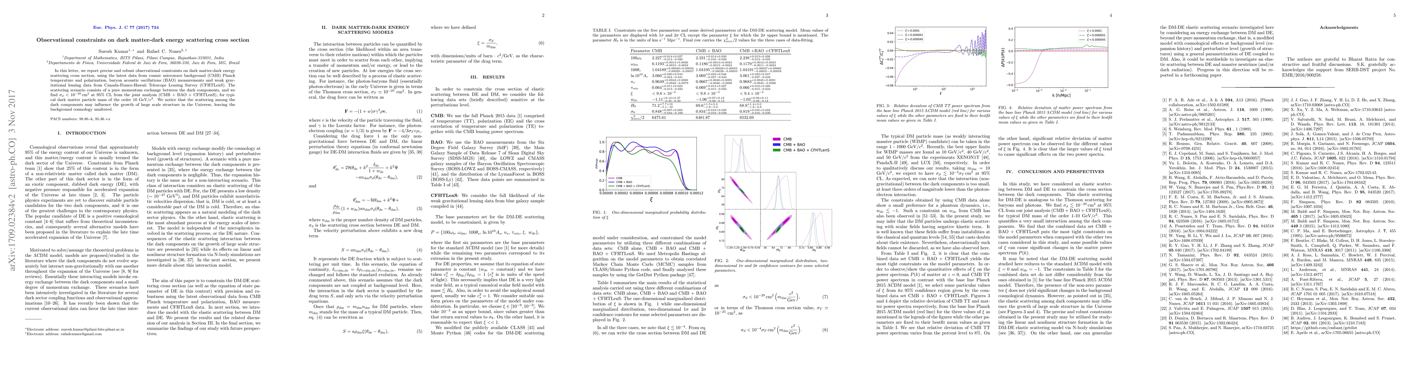 This paper reports observational constraints on the dark matter-dark energy scattering cross-section, finding $\sigma_d < 10^{-29} \, {\rm cm^2}$ at 95% confidence level using data from CMB, BAO, and weak lensing. The study suggests that dark matter-dark energy scattering may affect the growth of large-scale structures without altering background cosmology.