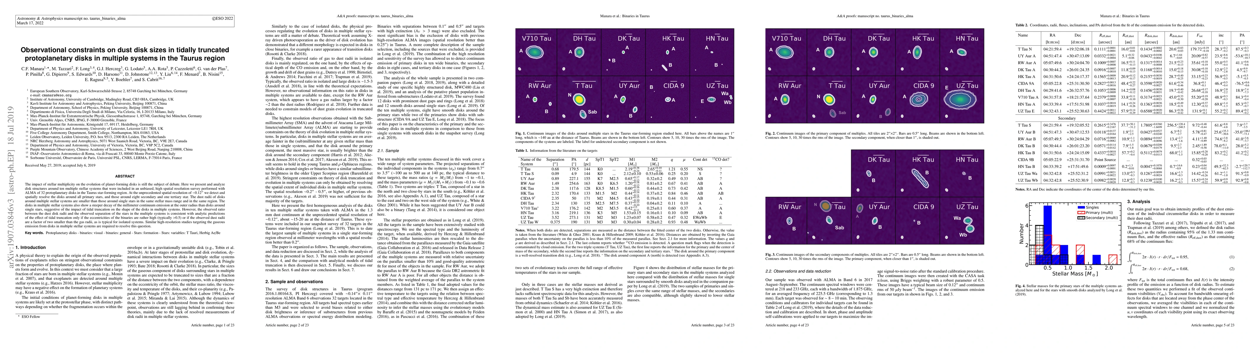 This study uses ALMA to analyze dust disk sizes in protoplanetary disks around ten multiple stellar systems in the Taurus region, finding that disks in multiple systems are smaller and show steeper emission decay compared to single stars. The observed disk sizes suggest tidal truncation effects, but discrepancies arise regarding the expected impact of binary eccentricities or dust-to-gas ratio.