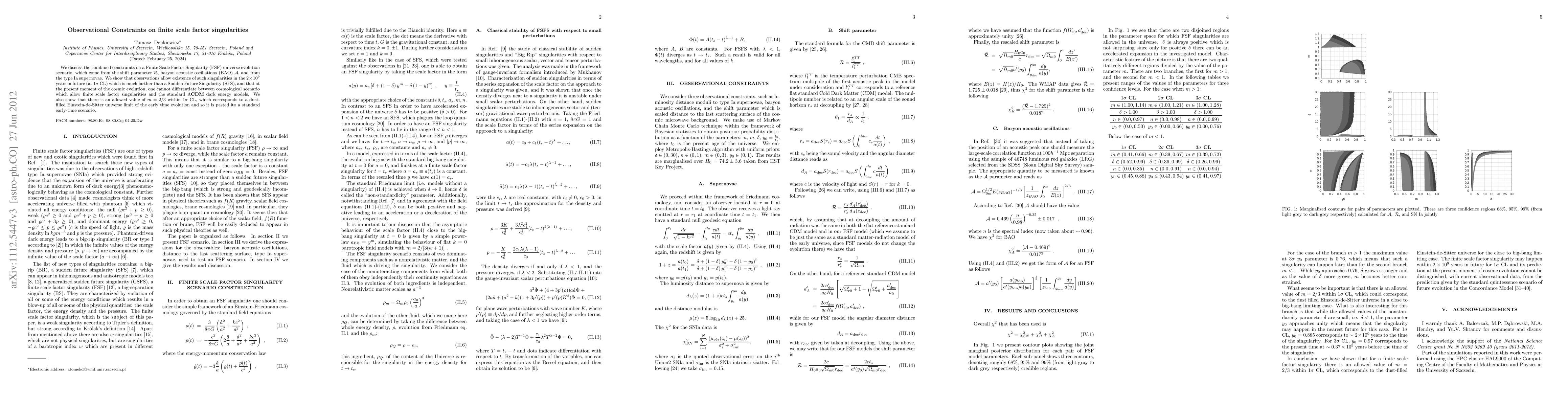 This paper examines observational constraints on the evolution of a Finite Scale Factor Singularity (FSF) universe, finding that such singularities could exist in the future within 2x10^9 years at 1σ confidence level. It concludes that current observations do not distinguish between FSF scenarios and standard dark energy models, and allows for an m=2/3 value corresponding to a dust-filled Einstein-de-Sitter universe.