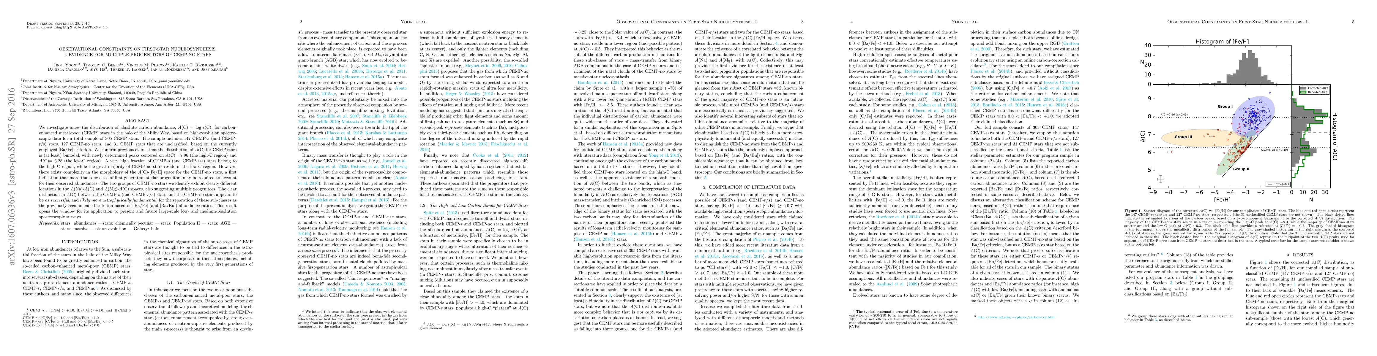 This paper analyzes the carbon abundance distribution in carbon-enhanced metal-poor (CEMP) stars, confirming a bimodal distribution with peaks at $A$(C) = 7.96 and 6.28. The study suggests that multiple progenitors are needed to explain the observed abundances of CEMP-no stars, indicating a more complex nucleosynthesis history than previously thought.