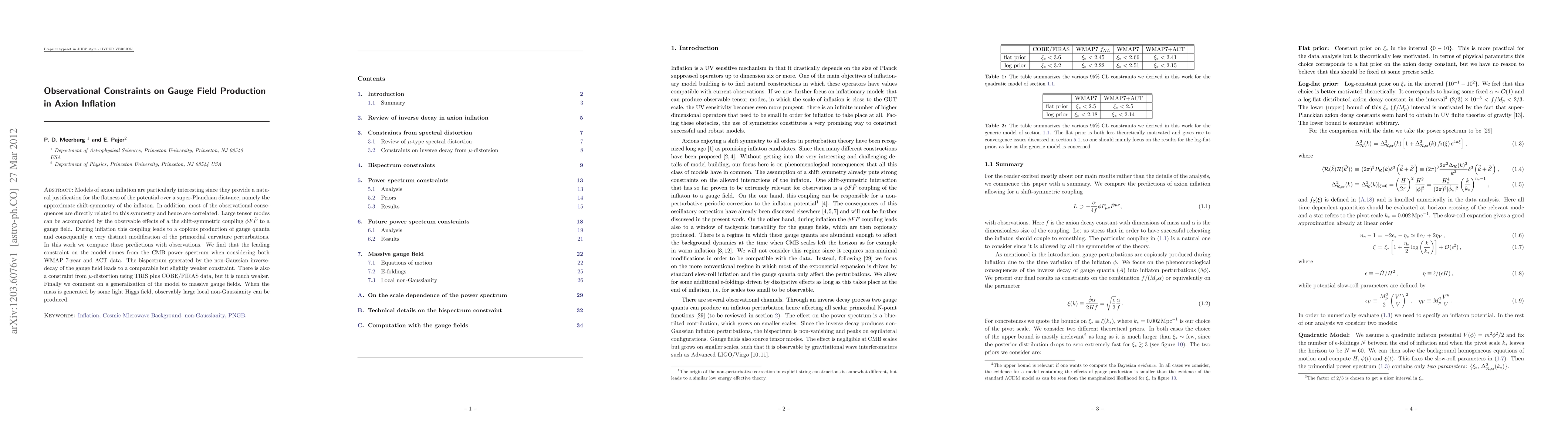 Models of axion inflation are particularly interesting since they provide a natural justification for the flatness of the potential over a super-Planckian distance, namely the approximate shift-symmetry of the inflaton. In addition, most of the observational consequences are directly related to this symmetry and hence are correlated. Large tensor modes can be accompanied by the observable effects of a the shift-symmetric coupling $\phi F\tilde F$ to a gauge field. During inflation this coupling leads to a copious production of gauge quanta and consequently a very distinct modification of the primordial curvature perturbations. In this work we compare these predictions with observations. We find that the leading constraint on the model comes from the CMB power spectrum when considering both WMAP 7-year and ACT data. The bispectrum generated by the non-Gaussian inverse-decay of the gauge field leads to a comparable but slightly weaker constraint. There is also a constraint from mu-distortion using TRIS plus COBE/FIRAS data, but it is much weaker. Finally we comment on a generalization of the model to massive gauge fields. When the mass is generated by some light Higgs field, observably large local non-Gaussianity can be produced.