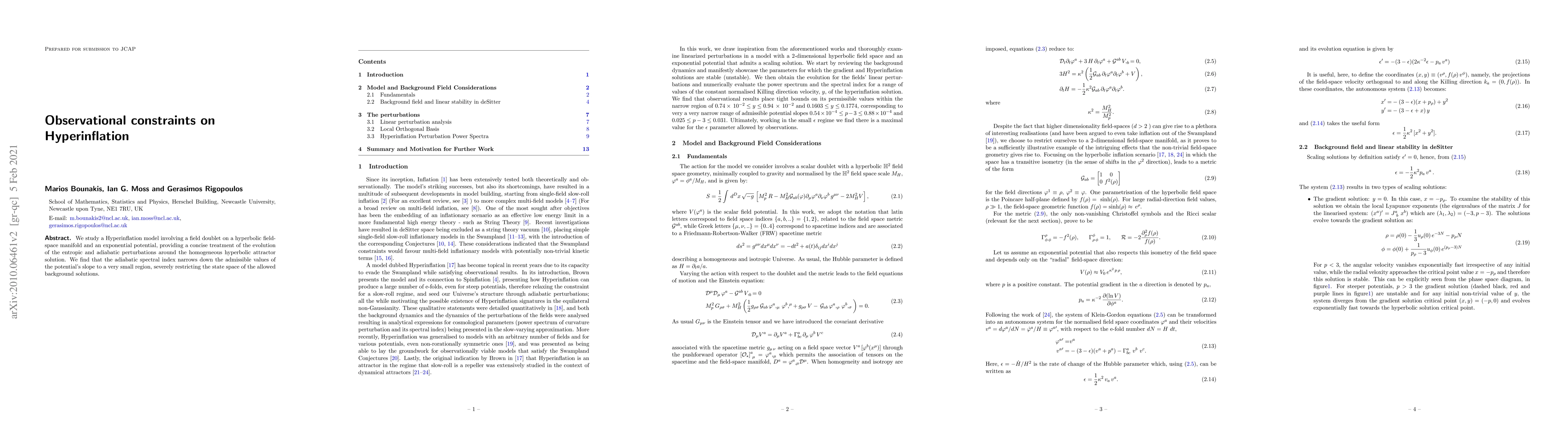 We study a Hyperinflation model involving a field doublet on a hyperbolic field-space manifold and an exponential potential, providing a concise treatment of the evolution of the entropic and adiabatic perturbations around the homogeneous hyperbolic attractor solution. We find that the adiabatic spectral index narrows down the admissible values of the potential's slope to a very small region, severely restricting the state space of the allowed background solutions.
