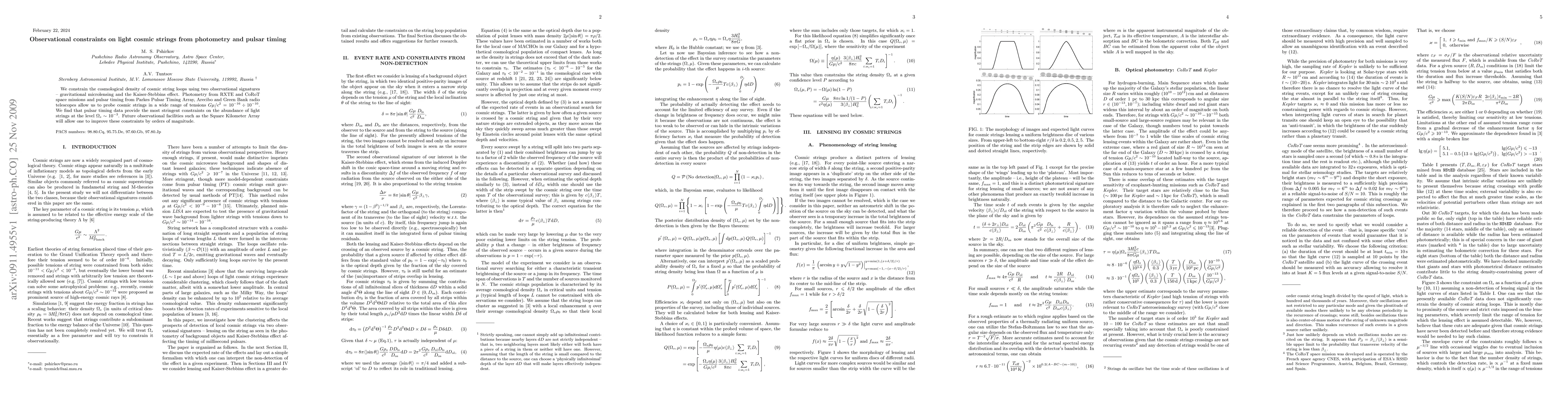 This paper uses gravitational microlensing and the Kaiser-Stebbins effect to constrain the density of cosmic string loops, finding that pulsar timing data provide the most stringent limits on light cosmic strings. Future facilities like the Square Kilometer Array promise to significantly enhance these constraints.