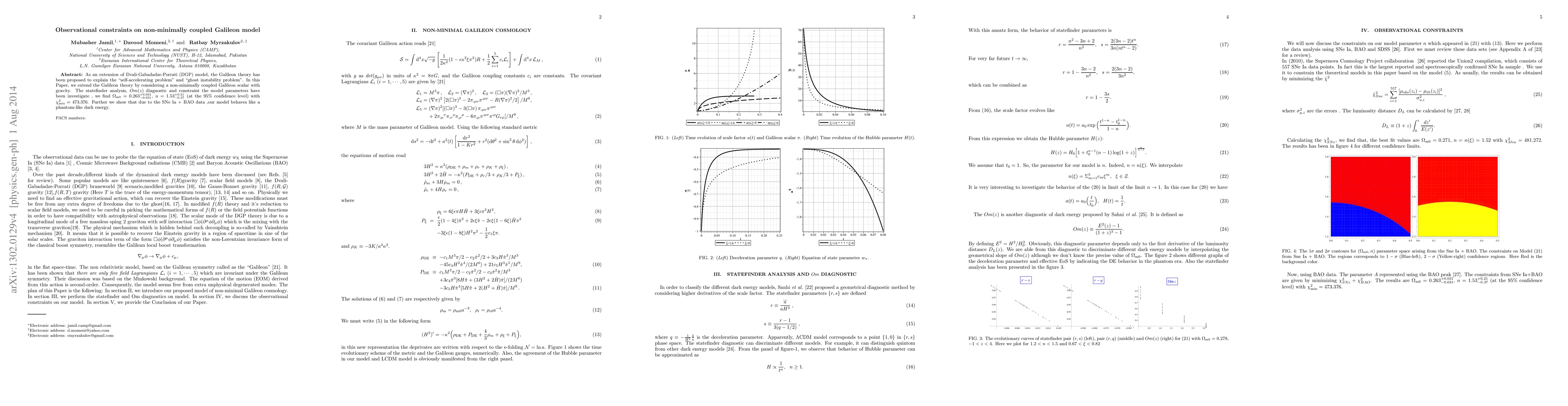 As an extension of Dvali-Gabadadze-Porrati (DGP) model, the Galileon theory has been proposed to explain the "self-accelerating problem" and "ghost instability problem". In this Paper, we extend the Galileon theory by considering a non-minimally coupled Galileon scalar with gravity. The statefinder analysis, $Om(z)$ diagnostic and constraint the model parameters have been investigate , we find $\Omega_\text{m0}=0.263_{-0.031}^{+0.031}$, $n=1.53_{-0.37}^{+0.21}$ (at the $95\%$ confidence level) with $\chi^2_{\text{min}}=473.376$. Further we show that due to the SNe Ia + BAO data ,our model behaves like a phantom-like dark energy.