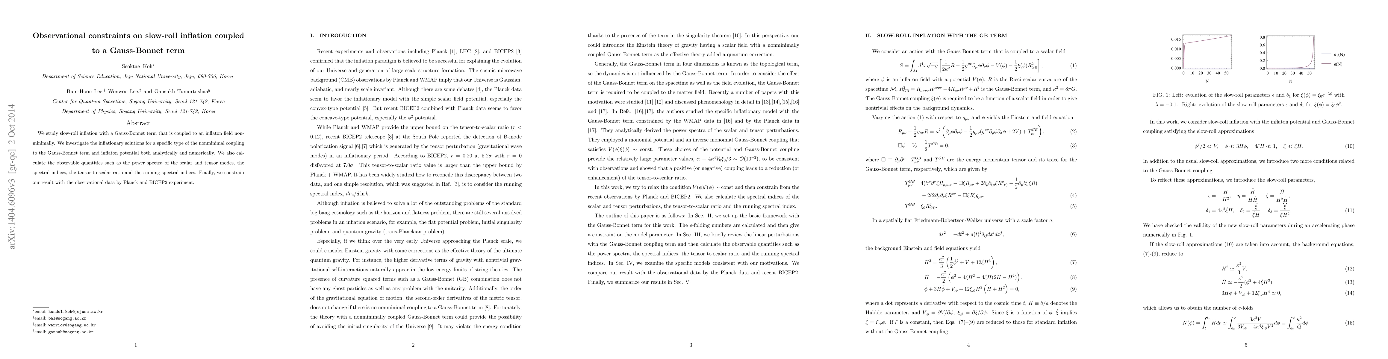 This paper examines slow-roll inflation models incorporating a nonminimal coupling to a Gauss-Bonnet term and an inflaton field, analyzing both analytically and numerically derived solutions. It calculates observable quantities and constrains the model using observational data from Planck and BICEP2.