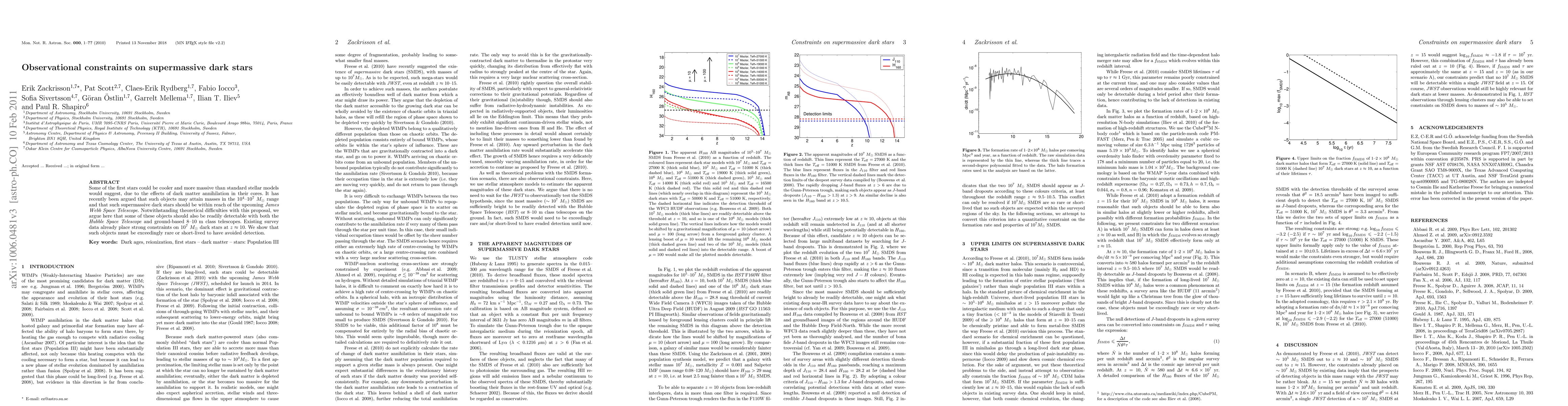 Some of the first stars could be cooler and more massive than standard stellar models would suggest, due to the effects of dark matter annihilation in their cores. It has recently been argued that such objects may attain masses in the 10^4--10^7 solar mass range, and that such supermassive dark stars should be within reach of the upcoming James Webb Space Telescope. Notwithstanding theoretical difficulties with this proposal, we argue here that some of these objects should also be readily detectable with both the Hubble Space Telescope and ground-based 8--10 m class telescopes. Existing survey data already place strong constraints on 10^7 solar mass dark stars at z~10. We show that such objects must be exceedingly rare or short-lived to have avoided detection.