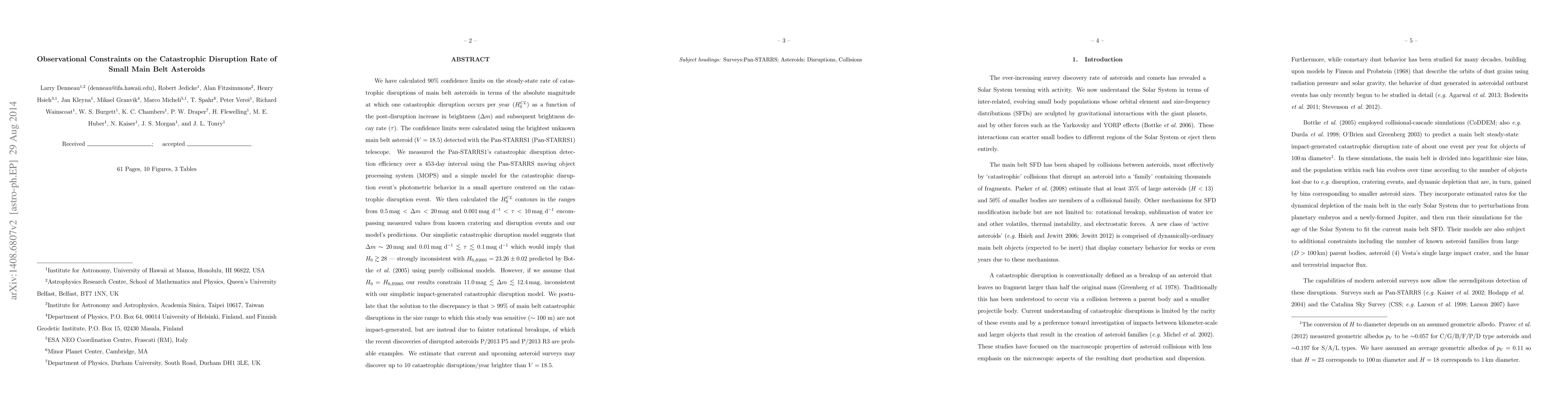This study calculates 90% confidence limits on the disruption rate of small main belt asteroids, finding a rate of H0 = 28, which conflicts with previous collisional models. The authors suggest that most disruptions are due to rotational breakups, not collisions, and predict up to 10 detectable disruptions per year from future surveys.