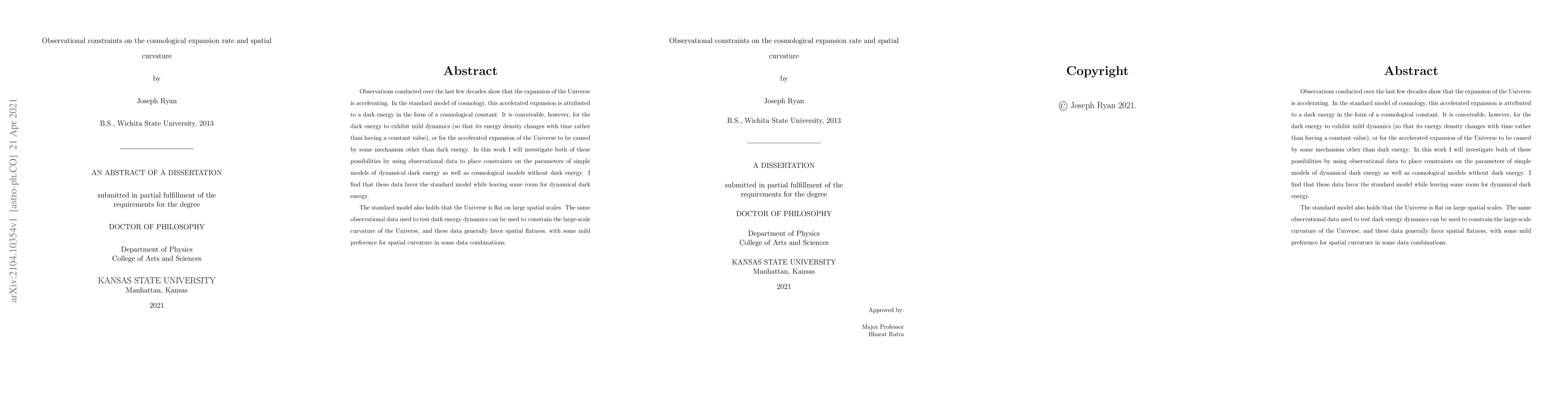 This paper investigates observational constraints on the cosmological expansion rate and spatial curvature using recent data, finding that while the standard model of dark energy is favored, there is some support for dynamical dark energy and a slight preference for spatial curvature in certain datasets.