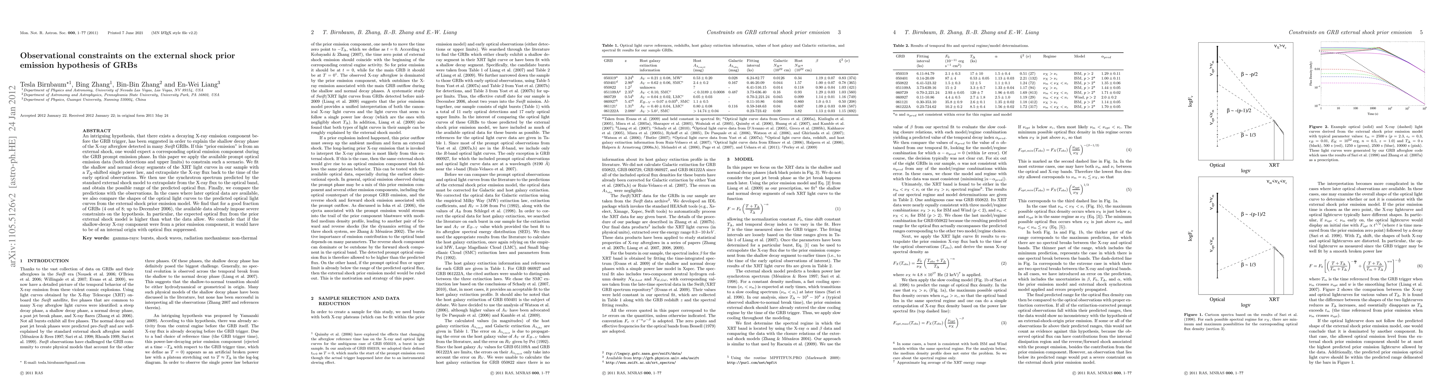 An intriguing hypothesis, that there exists a decaying X-ray emission component before the GRB trigger, has been suggested in order to explain the shallow decay phase of the X-ray afterglow detected in many Swift GRBs. If this "prior emission" is from an external shock, one would expect a corresponding optical emission component during the GRB prompt emission phase. In this paper we apply the available prompt optical emission data (both detections and upper limits) to constrain such a scenario. We fit the shallow and normal decay segments of the XRT light curves in our sample with a T_\Delta-shifted single power law, and extrapolate the X-ray flux back to the time of the early optical observations. We then use the synchrotron spectrum predicted by the standard external shock model to extrapolate from the X-ray flux to the optical band, and obtain the possible range of the predicted optical flux. Finally, we compare the predictions with the observations. In the cases where later optical data are available, we also compare the shapes of the optical light curves to the predicted optical light curves from the external shock prior emission model. We find that for a good fraction of GRBs (4 out of 8; up to December 2006), the available data already impose severe constraints on the hypothesis. In particular, the expected optical flux from the prior external shock model is higher than what the data allow. We conclude that if the shallow-decay X-ray component were from a prior emission component, it would have to be of an internal origin with optical flux suppressed.