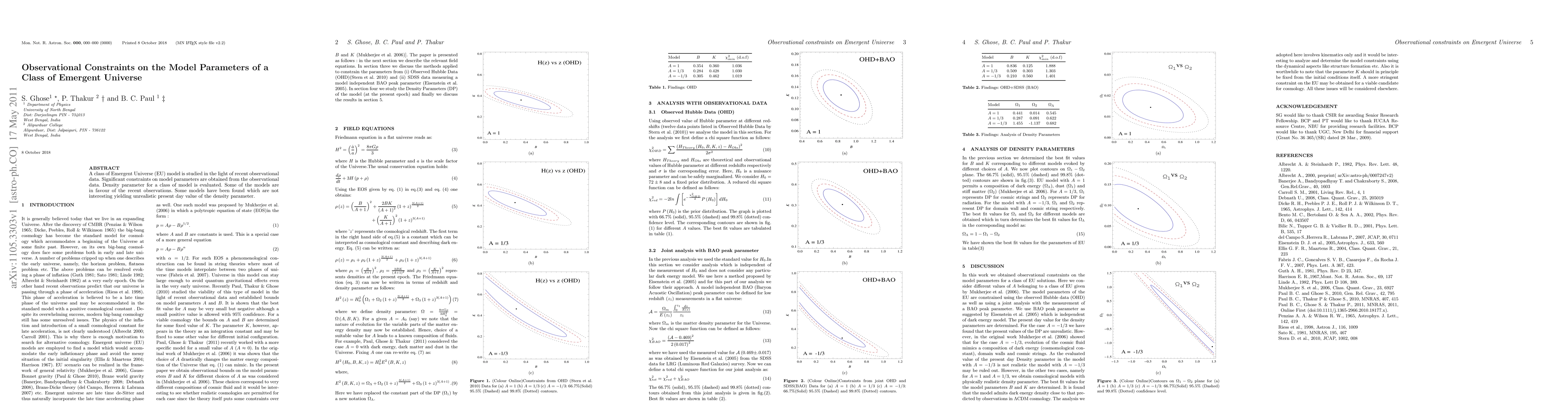 A class of Emergent Universe (EU) model is studied in the light of recent observational data. Significant constraints on model parameters are obtained from the observational data. Density parameter for a class of model is evaluated. Some of the models are in favour of the recent observations. Some models have been found which are not interesting yielding unrealistic present day value of the density parameter.
