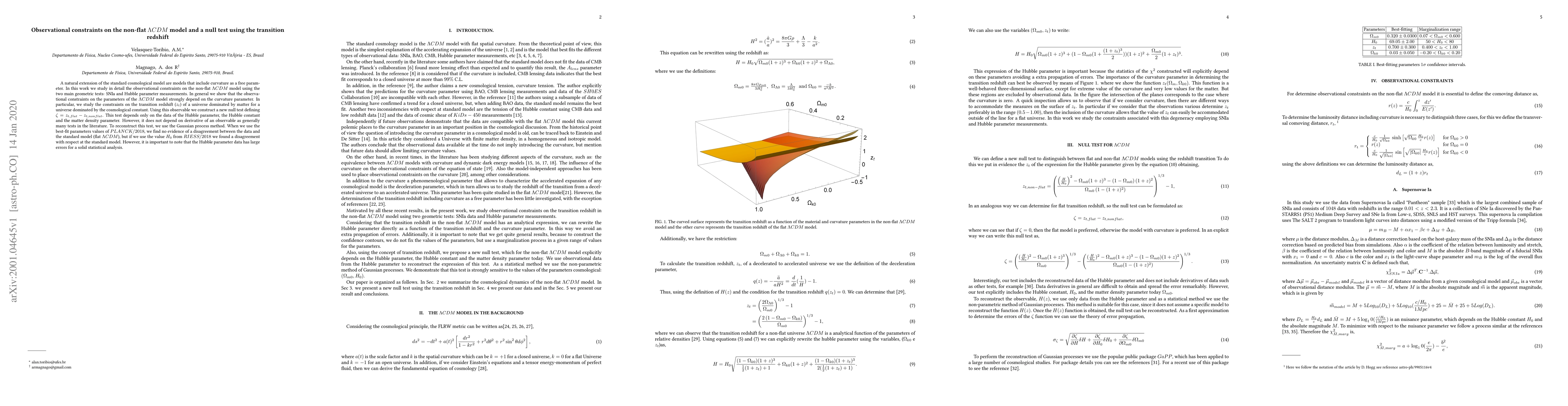 This paper investigates observational constraints on the non-flat $\Lambda CDM$ model using SNIa and Hubble parameter measurements, showing that these constraints depend heavily on the curvature parameter. A new null test is proposed based on the transition redshift, finding no significant disagreement with the standard model when using Planck 2018 data, but a potential discrepancy when using Riess 2018 data, though the latter has large uncertainties.