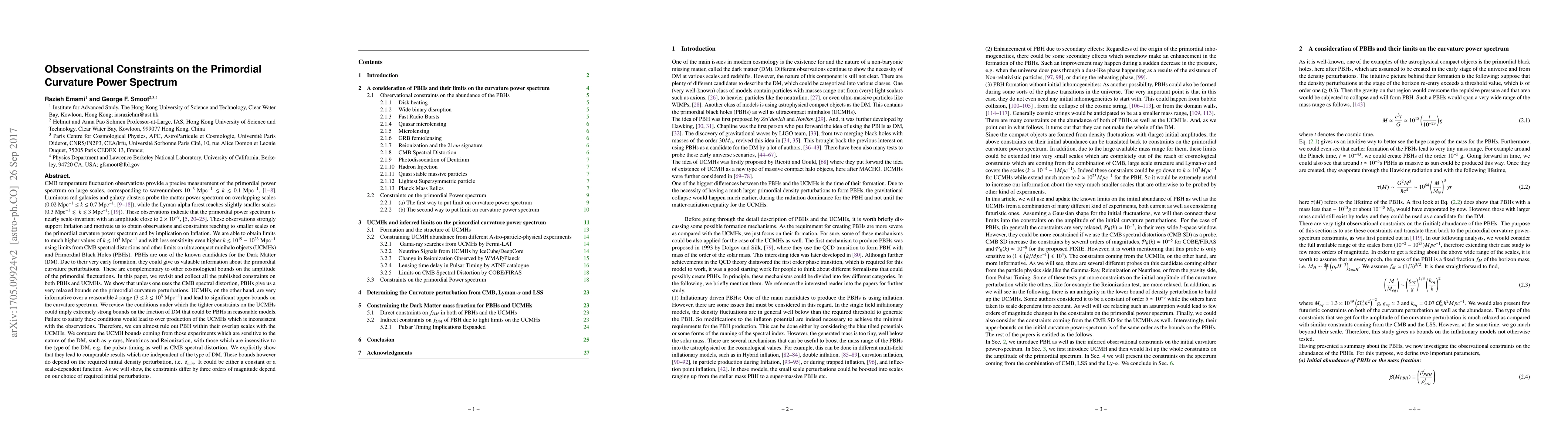 This paper reviews observational constraints on the primordial curvature power spectrum, focusing on the limits provided by primordial black holes (PBHs) and ultracompact minihalos (UCMHs). It finds that while PBHs offer relaxed bounds, UCMHs provide strong constraints on the curvature spectrum, especially in the range $3 < k < 10^6$ Mpc$^{-1}$, and can almost rule out PBHs within this overlap scale.