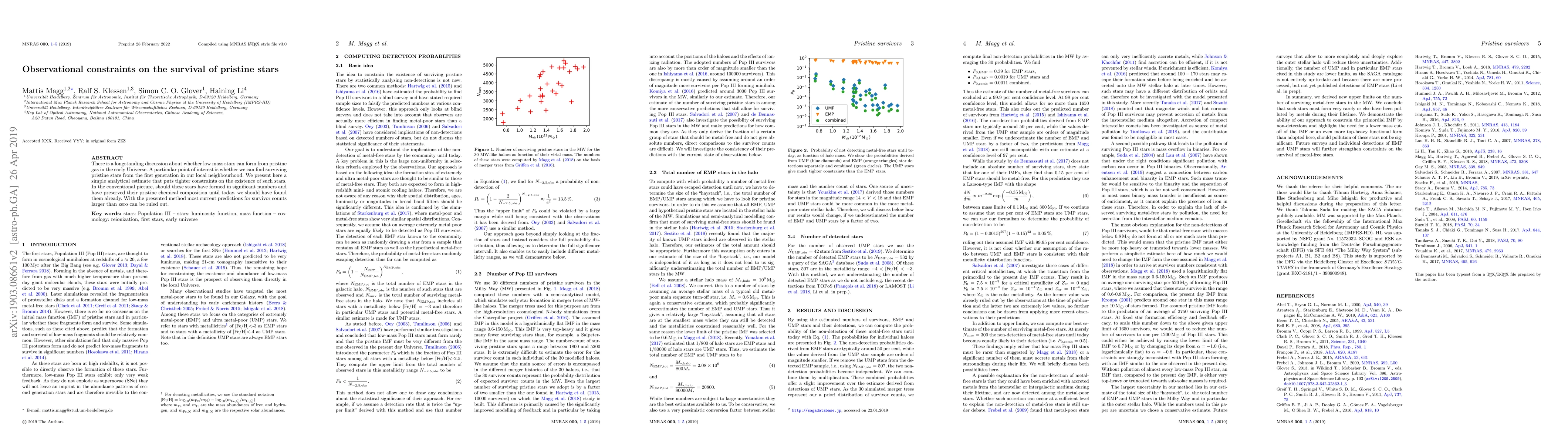 There is a longstanding discussion about whether low mass stars can form from pristine gas in the early Universe. A particular point of interest is whether we can find surviving pristine stars from the first generation in our local neighbourhood. We present here a simple analytical estimate that puts tighter constraints on the existence of such stars. In the conventional picture, should these stars have formed in significant numbers and have preserved their pristine chemical composition until today, we should have found them already. With the presented method most current predictions for survivor counts larger than zero can be ruled out.