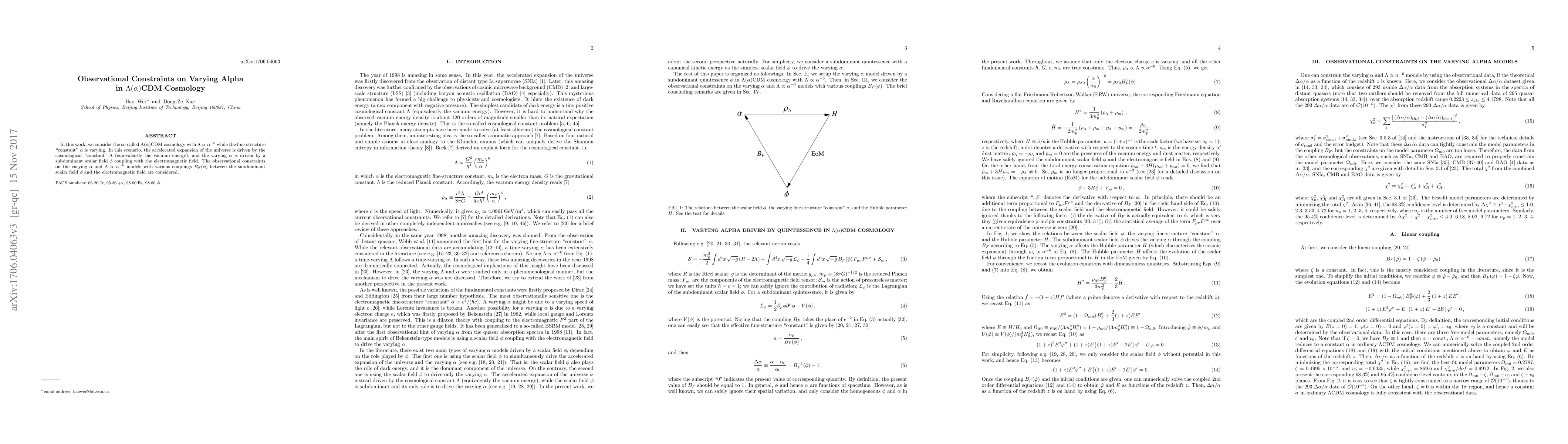 In this work, we consider the so-called $\Lambda(\alpha)$CDM cosmology with $\Lambda\propto\alpha^{-6}$ while the fine-structure "constant" $\alpha$ is varying. In this scenario, the accelerated expansion of the universe is driven by the cosmological "constant" $\Lambda$ (equivalently the vacuum energy), and the varying $\alpha$ is driven by a subdominant scalar field $\phi$ coupling with the electromagnetic field. The observational constraints on the varying $\alpha$ and $\Lambda\propto\alpha^{-6}$ models with various couplings $B_F(\phi)$ between the subdominant scalar field $\phi$ and the electromagnetic field are considered.