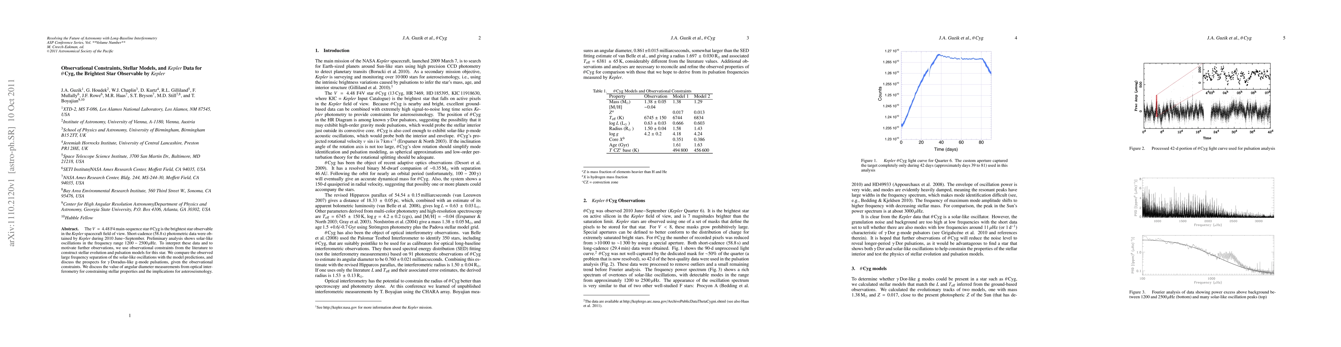 This paper uses Kepler data to analyze the star theta Cyg, finding solar-like oscillations with a large frequency separation that can help predict gamma Doradus-like pulsations. It also discusses the value of angular diameter measurements for constraining stellar properties in asteroseismology.