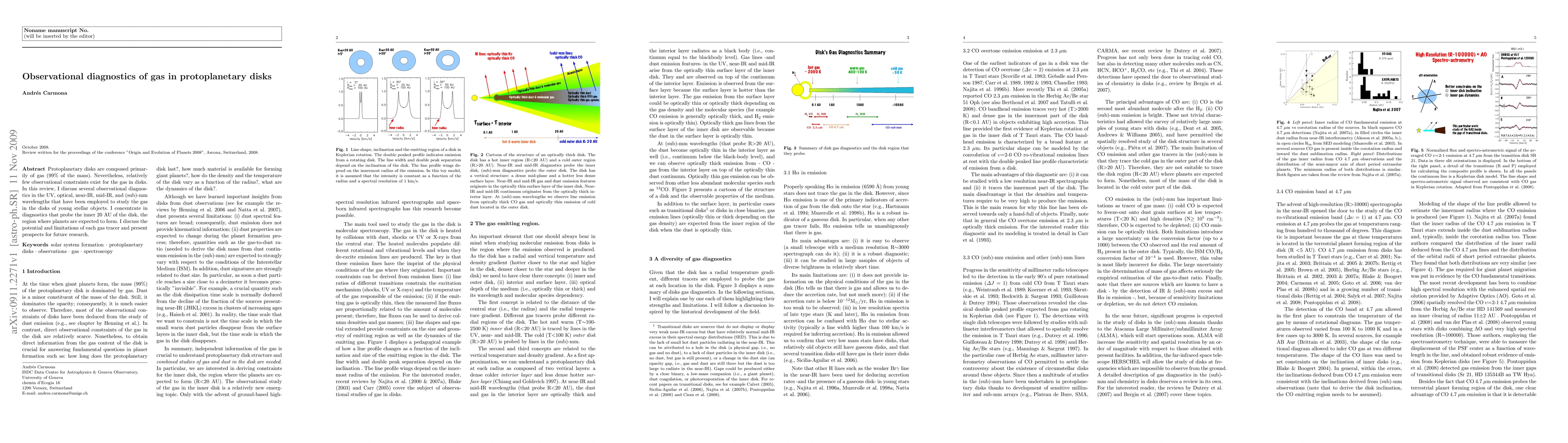 This review explores various observational techniques across multiple wavelengths to study the gas in protoplanetary disks, focusing on diagnostics that reveal the inner 20 AU where planets form. It evaluates the potential and limitations of each method and outlines future research prospects.