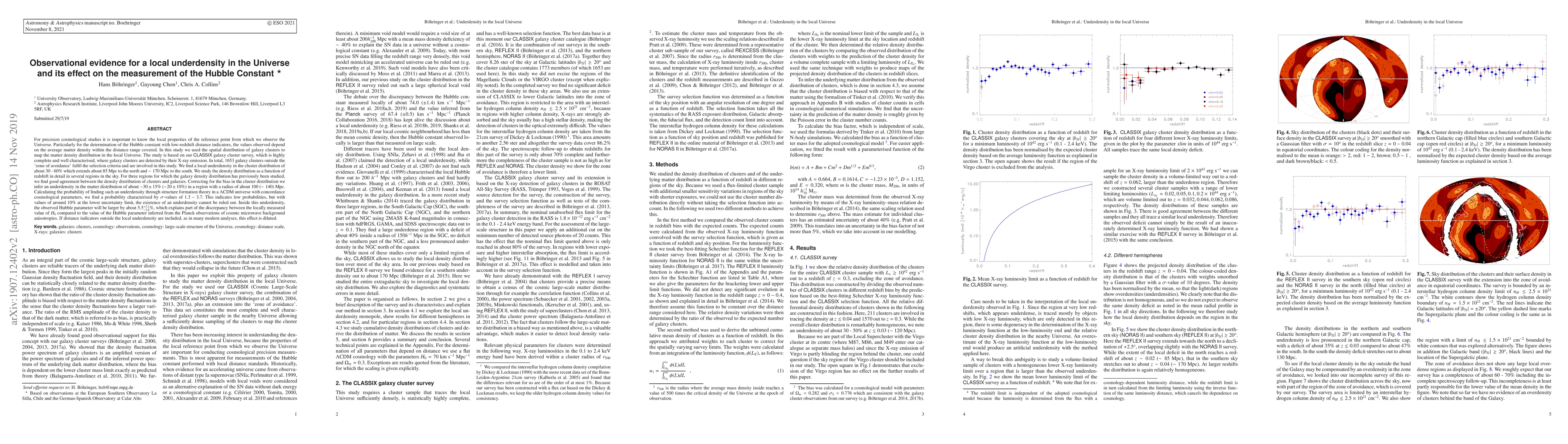 New research suggests a local underdensity in the Universe affects Hubble Constant measurements, with galaxy clusters revealing an underdensity of 30-60% extending ~85 Mpc to the north and ~170 Mpc to the south.