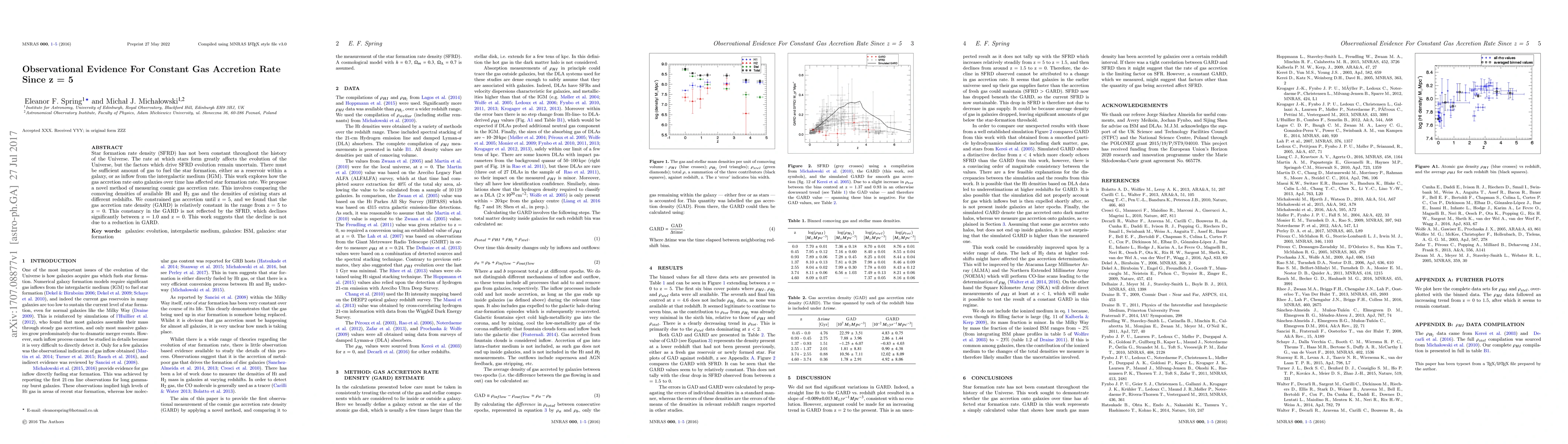 This paper presents observational evidence indicating a relatively constant gas accretion rate density (GARD) from z = 5 to z = 0, despite a significant decline in star formation rate density (SFRD) from z = 1.0 to z = 0, suggesting factors other than gas accretion drive the SFRD evolution.