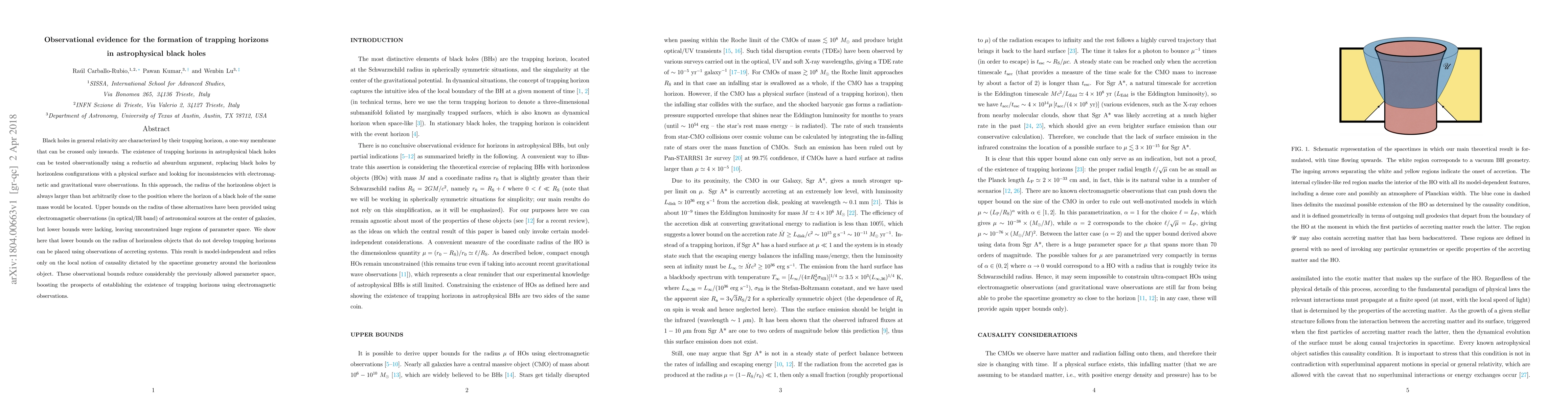 Black holes in general relativity are characterized by their trapping horizon, a one-way membrane that can be crossed only inwards. The existence of trapping horizons in astrophysical black holes can be tested observationally using a reductio ad absurdum argument, replacing black holes by horizonless configurations with a physical surface and looking for inconsistencies with electromagnetic and gravitational wave observations. In this approach, the radius of the horizonless object is always larger than but arbitrarily close to the position where the horizon of a black hole of the same mass would be located. Upper bounds on the radius of these alternatives have been provided using electromagnetic observations (in optical/IR band) of astronomical sources at the center of galaxies, but lower bounds were lacking, leaving unconstrained huge regions of parameter space. We show here that lower bounds on the radius of horizonless objects that do not develop trapping horizons can be placed using observations of accreting systems. This result is model-independent and relies only on the local notion of causality dictated by the spacetime geometry around the horizonless object. These observational bounds reduce considerably the previously allowed parameter space, boosting the prospects of establishing the existence of trapping horizons using electromagnetic observations.