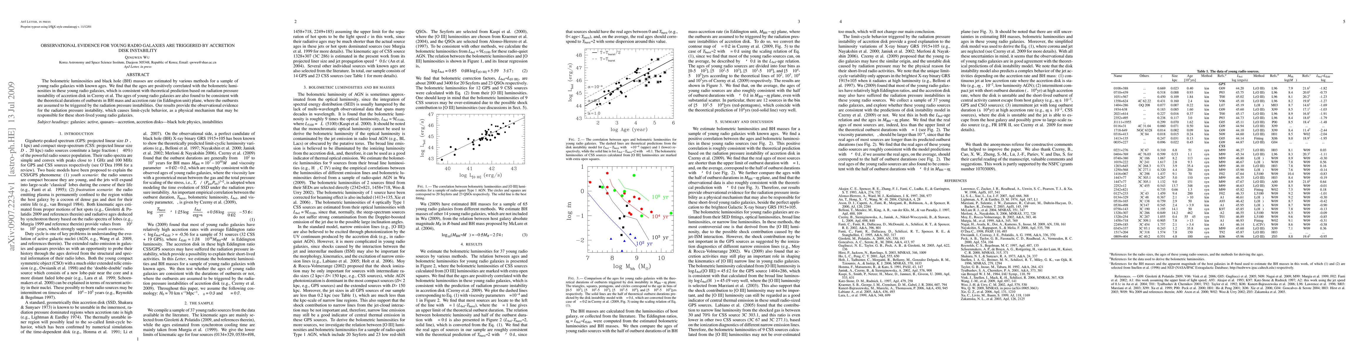 This study finds that young radio galaxies exhibit a positive correlation between age and bolometric luminosity, supporting the theory that their activity is triggered by radiation pressure instability in accretion disks. The observed durations align with theoretical outbursts, suggesting this instability drives the limit-cycle behavior of these galaxies.