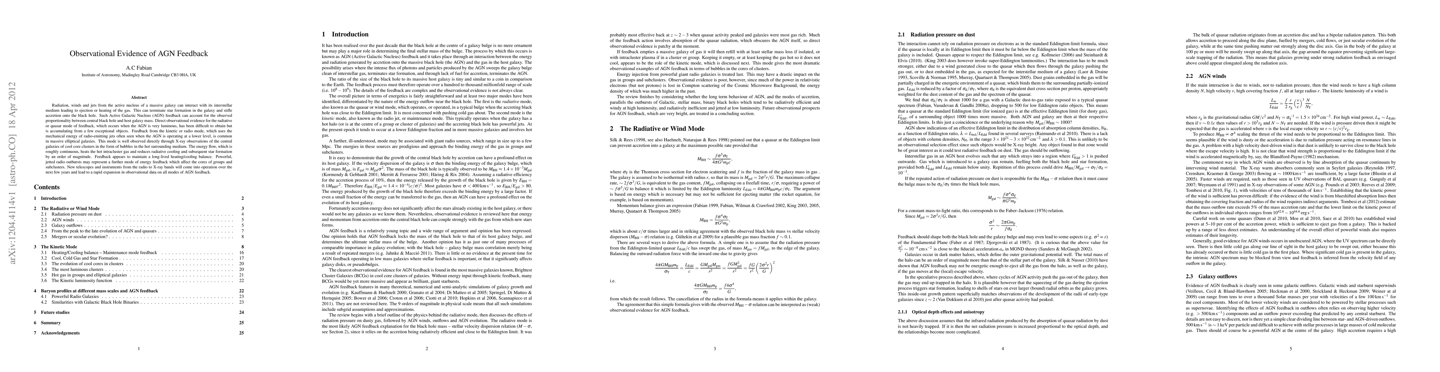 This paper discusses the various modes of Active Galactic Nucleus (AGN) feedback, including radiative and kinetic modes, and their impact on star formation and black hole accretion. Direct observational evidence for AGN feedback is accumulating, with kinetic mode feedback being well observed in massive elliptical galaxies through X-ray studies.