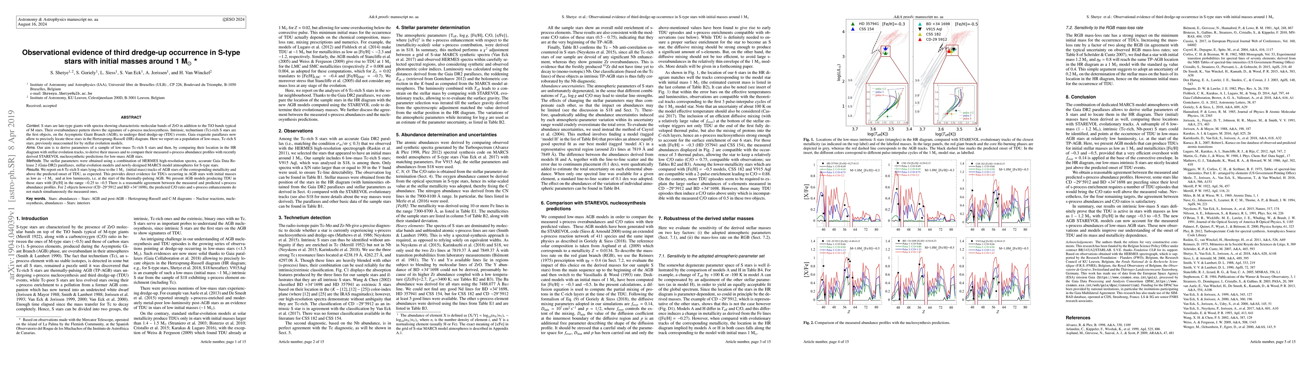 A study confirms third dredge-up events occur in S-type stars with initial masses as low as 1 Msun, challenging current stellar evolution models.