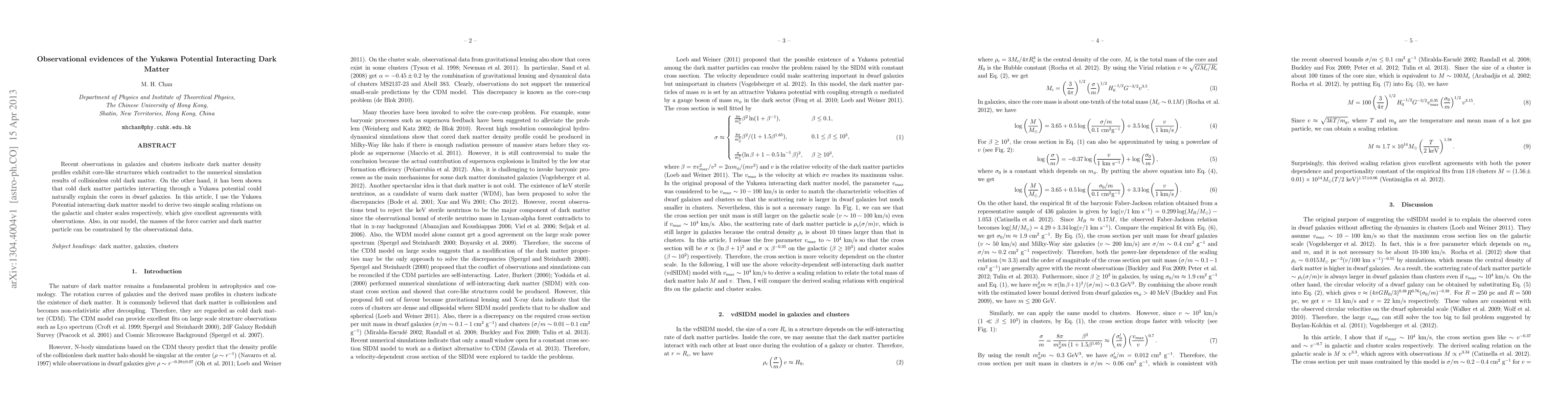 This paper proposes that Yukawa Potential interacting dark matter can explain core-like structures in galaxies and clusters, contrasting with collisionless cold dark matter simulations. The study derives scaling relations that align well with observations and constrains the masses of the force carrier and dark matter particles using these relations.