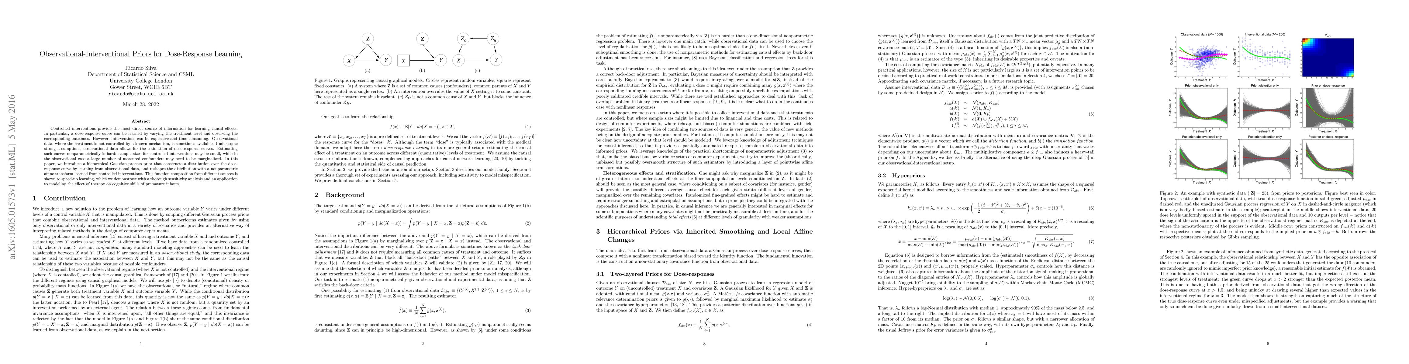 Controlled interventions provide the most direct source of information for learning causal effects. In particular, a dose-response curve can be learned by varying the treatment level and observing the corresponding outcomes. However, interventions can be expensive and time-consuming. Observational data, where the treatment is not controlled by a known mechanism, is sometimes available. Under some strong assumptions, observational data allows for the estimation of dose-response curves. Estimating such curves nonparametrically is hard: sample sizes for controlled interventions may be small, while in the observational case a large number of measured confounders may need to be marginalized. In this paper, we introduce a hierarchical Gaussian process prior that constructs a distribution over the dose-response curve by learning from observational data, and reshapes the distribution with a nonparametric affine transform learned from controlled interventions. This function composition from different sources is shown to speed-up learning, which we demonstrate with a thorough sensitivity analysis and an application to modeling the effect of therapy on cognitive skills of premature infants.