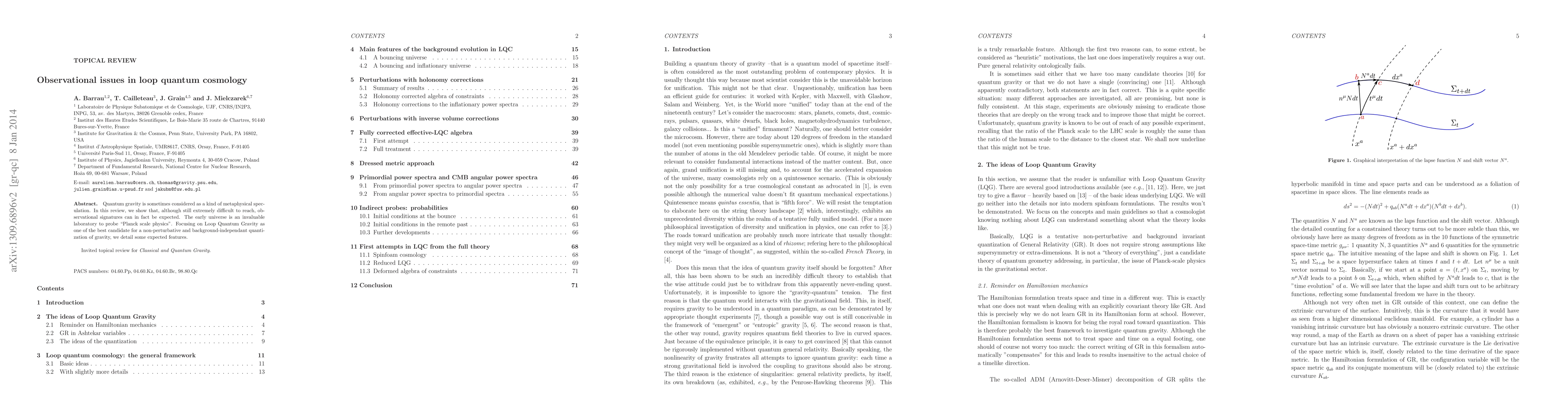 Quantum gravity is sometimes considered as a kind of metaphysical speculation. In this review, we show that, although still extremely difficult to reach, observational signatures can in fact be expected. The early universe is an invaluable laboratory to probe "Planck scale physics". Focusing on Loop Quantum Gravity as one of the best candidate for a non-perturbative and background-independant quantization of gravity, we detail some expected features.