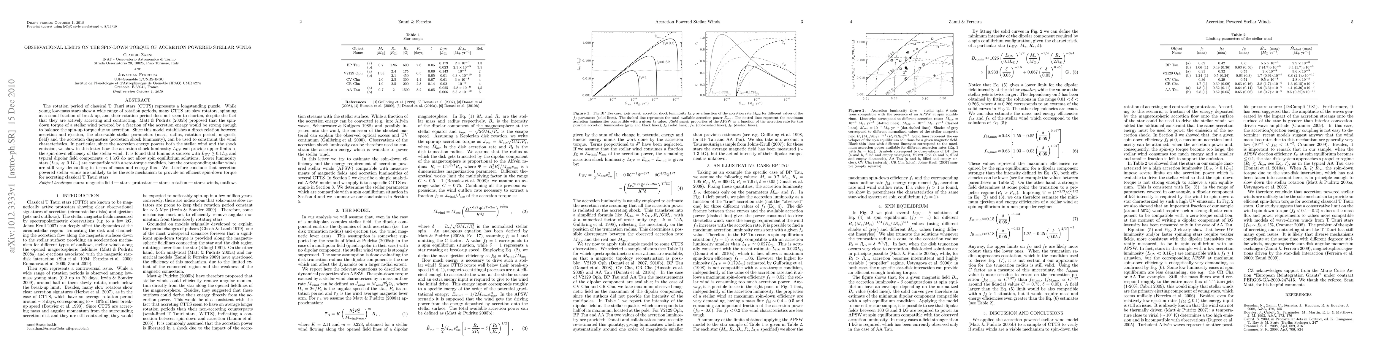 This paper investigates the spin-down torque of accretion-powered stellar winds in classical T Tauri stars (CTTS), finding that luminous sources with high accretion shock luminosity cannot maintain spin equilibrium. Lower luminosity stars may allow for zero-torque, but still require substantial wind mass and energy flux, concluding that these winds are unlikely to efficiently spin down accreting CTTS.