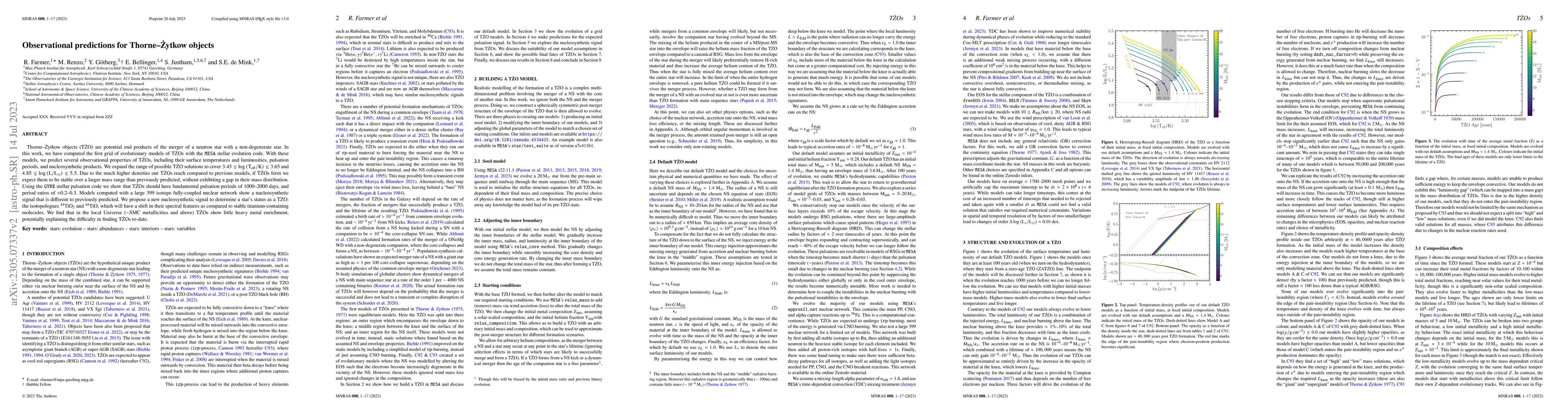 Thorne-$\.Z$ytkow objects (T$\.Z$O) are potential end products of the merger of a neutron star with a non-degenerate star. In this work, we have computed the first grid of evolutionary models of T$\.Z$Os with the MESA stellar evolution code. With these models, we predict several observational properties of T$\.Z$Os, including their surface temperatures and luminosities, pulsation periods, and nucleosynthetic products. We expand the range of possible T$\.Z$O solutions to cover $3.45 \lesssim \log \left(T/K\right) \lesssim 3.65$ and $4.85 \lesssim \log \left(L/L_{\odot}\right) \lesssim 5.5$. Due to the much higher densities our T$\.Z$Os reach compared to previous models, if T$\.Z$Os form we expect them to be stable over a larger mass range than previously predicted, without exhibiting a gap in their mass distribution. Using the GYRE stellar pulsation code we show that T$\.Z$Os should have fundamental pulsation periods of 1000--2000 days, and period ratios of $\approx$0.2--0.3. Models computed with a large 399 isotope fully-coupled nuclear network show a nucleosynthetic signal that is different to previously predicted. We propose a new nucleosynthetic signal to determine a star's status as a T$\.Z$O: the isotopologues $^{44}\rm{Ti} \rm{O}_2$ and $^{44}\rm{Ti} \rm{O}$, which will have a shift in their spectral features as compared to stable titanium-containing molecules. We find that in the local Universe (~SMC metallicities and above) T$\.Z$Os show little heavy metal enrichment, potentially explaining the difficulty in finding T$\.Z$Os to-date.