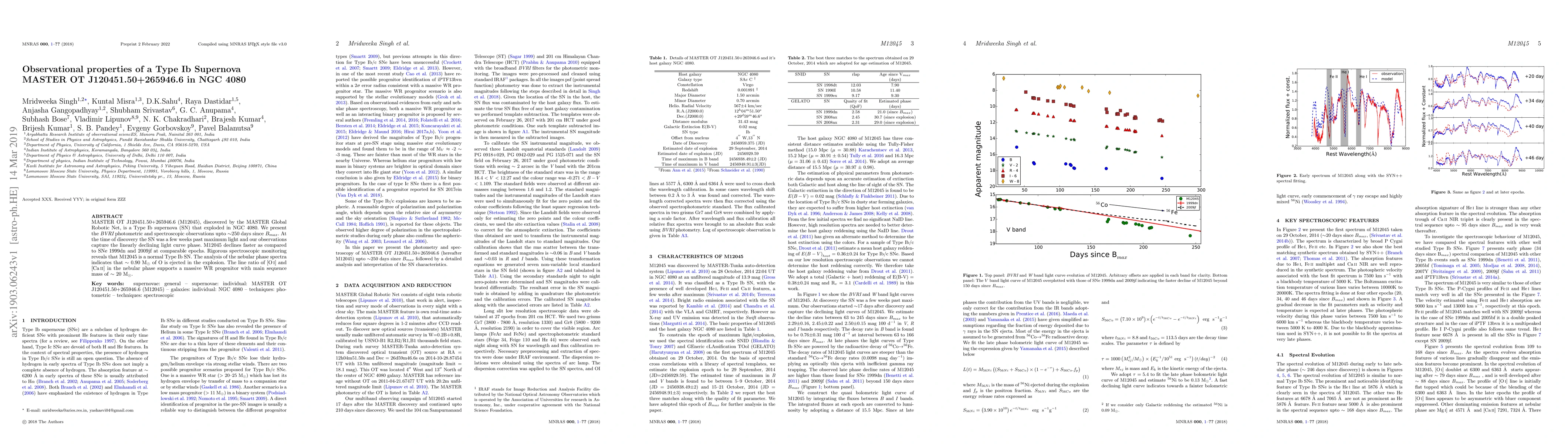 MASTER OT J120451.50+265946.6 (M12045), discovered by the MASTER Global Robotic Net, is a Type Ib supernova (SN) that exploded in NGC 4080. We present the {\it BVRI} photometric and spectroscopic observations upto $\sim$250 days since $B_{max}$. At the time of discovery the SN was a few weeks past maximum light and our observations capture the linearly declining light curve phase. M12045 declines faster as compared to SNe 1999dn and 2009jf at comparable epochs. Rigorous spectroscopic monitoring reveals that M12045 is a normal Type Ib SN. The analysis of the nebular phase spectra indicates that $\sim$ 0.90 M$_\odot$ of O is ejected in the explosion. The line ratio of [\ion{O}{I}] and [\ion{Ca}{II}] in the nebular phase supports a massive WR progenitor with main sequence mass of $\sim$ 20 M$_\odot$.
