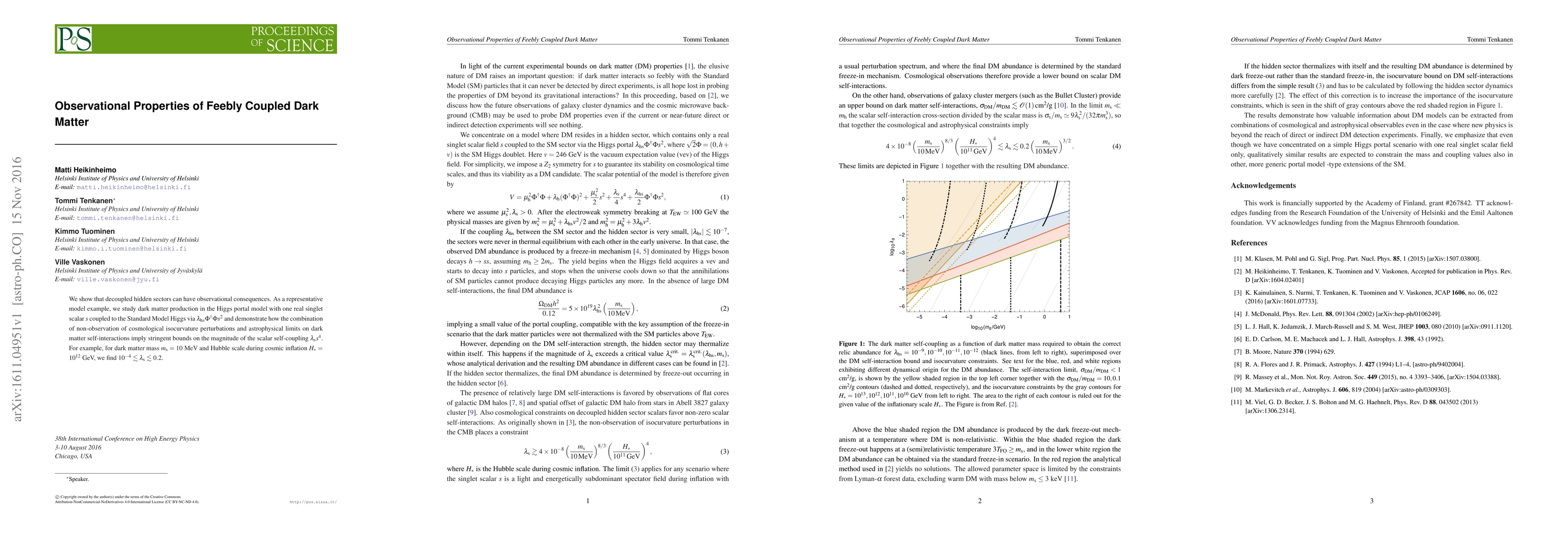 We show that decoupled hidden sectors can have observational consequences. As a representative model example, we study dark matter production in the Higgs portal model with one real singlet scalar $s$ coupled to the Standard Model Higgs via $\lambda_{\rm hs}\Phi^\dagger\Phi s^2$ and demonstrate how the combination of non-observation of cosmological isocurvature perturbations and astrophysical limits on dark matter self-interactions imply stringent bounds on the magnitude of the scalar self-coupling $\lambda_{\rm s}s^4$. For example, for dark matter mass $m_{\rm s}=10$ MeV and Hubble scale during cosmic inflation $H_*=10^{12}$ GeV, we find $10^{-4}\lesssim \lambda_{\rm s}\lesssim 0.2$.