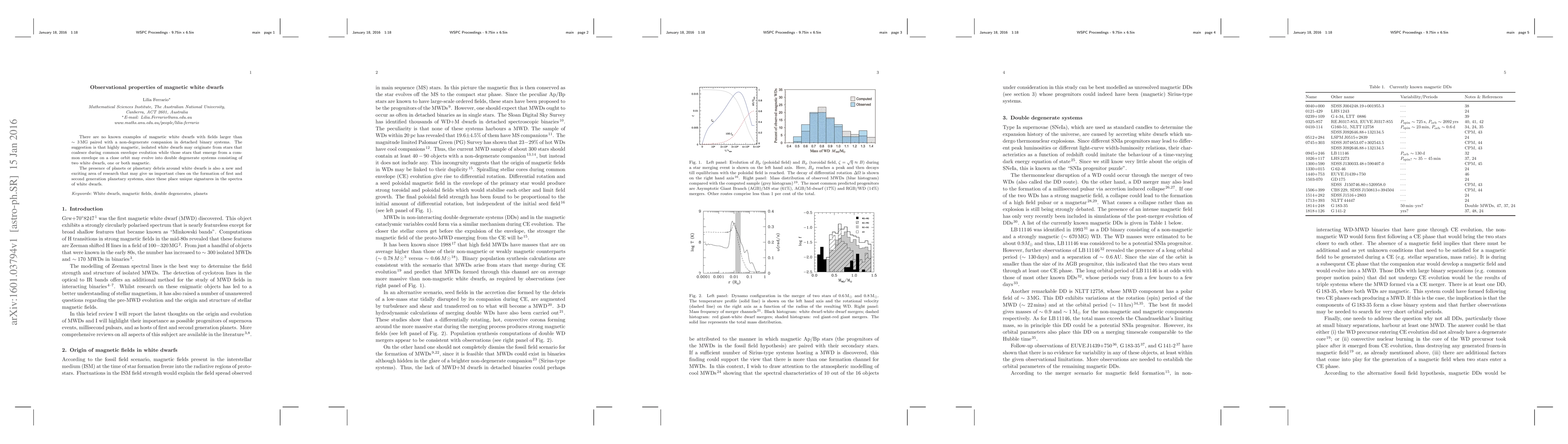 This paper explores the observational properties of magnetic white dwarfs, noting that no known magnetic white dwarfs with fields exceeding 3 MG have non-degenerate companions in detached binary systems. It suggests that highly magnetic isolated white dwarfs likely originate from stars that merge during common envelope evolution, while those on close orbits may evolve into double degenerate systems with one or both magnetic white dwarfs.