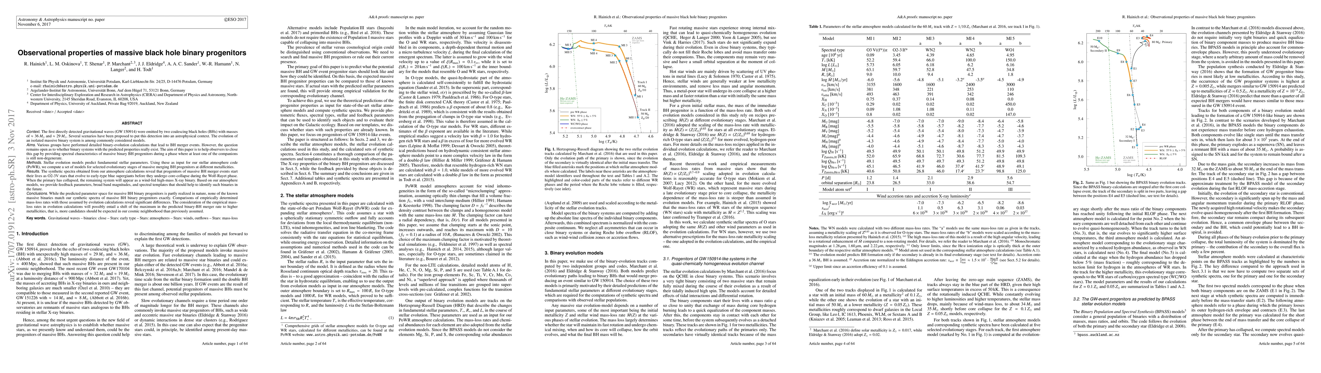 The first directly detected gravitational waves (GW 150914) were emitted by two coalescing black holes (BHs) with masses of ~36Msun and ~29Msun. Several scenarios have been proposed to put this detection into an astrophysical context. The evolution of an isolated massive binary system is among commonly considered models. Various groups have performed detailed binary-evolution calculations that lead to BH merger events. However, the question remains open as to whether binary systems with the predicted properties really exist. The aim of this paper is to help observers to close this gap by providing spectral characteristics of massive binary BH progenitors during a phase where at least one of the companions is still non-degenerate. Stellar evolution models predict fundamental stellar parameters. Using these as input for our stellar atmosphere code (PoWR), we compute a set of models for selected evolutionary stages of massive merging BH progenitors at different metallicities. The synthetic spectra obtained from our atmosphere calculations reveal that progenitors of massive BH merger events start their lives as O2-3V stars that evolve to early-type blue supergiants before they undergo core-collapse during the Wolf-Rayet phase. When the primary has collapsed, the remaining system will appear as a wind-fed high-mass X-ray binary. We provide feedback parameters, broad band magnitudes, and spectral templates that should help to identify such binaries in the future. Comparisons of empirically determined mass-loss rates with those assumed by evolution calculations reveal significant differences. The consideration of the empirical mass-loss rates in evolution calculations will possibly entail a shift of the maximum in the predicted binary-BH merger rate to higher metallicities, that is, more candidates should be expected in our cosmic neighborhood than previously assumed.