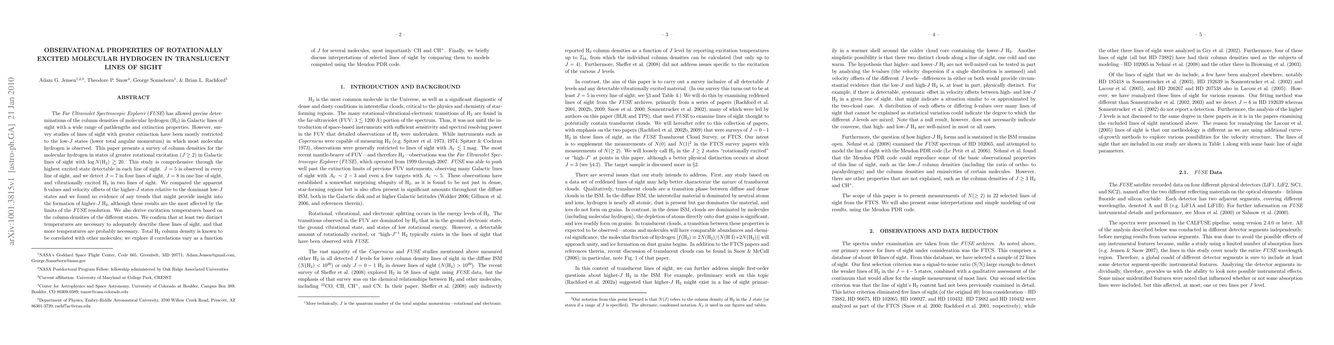 This paper uses FUSE data to survey column densities of rotationally excited molecular hydrogen ($J \geq 2$) in highly extincted Galactic lines of sight. It finds no clear trends in the formation of higher-$J$ states and suggests the need for multiple excitation temperatures to describe the observed lines of sight.