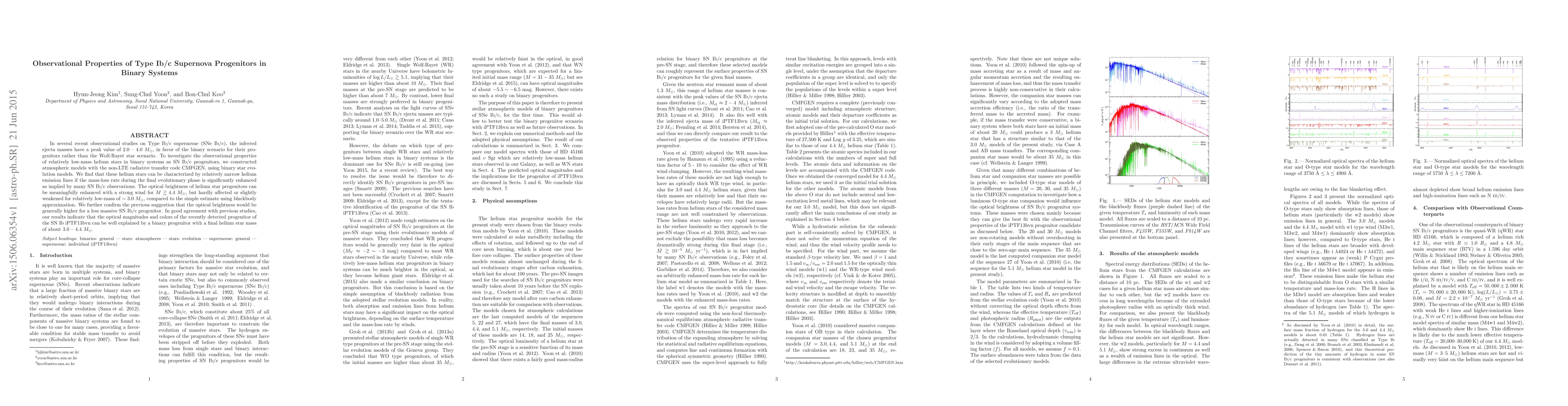 In several recent observational studies on Type Ib/c supernovae (SNe Ib/c), the inferred ejecta masses have a peak value of 2.0 -- 4.0 $M_\odot$, in favor of the binary scenario for their progenitors rather than the Wolf-Rayet star scenario. To investigate the observational properties of relatively low-mass helium stars in binary systems as SN Ib/c progenitors, we constructed atmospheric models with the non-LTE radiative transfer code CMFGEN, using binary star evolution models. We find that these helium stars can be characterized by relatively narrow helium emission lines if the mass-loss rate during the final evolutionary phase is significantly enhanced as implied by many SN Ib/c observations. The optical brightness of helium star progenitors can be meaningfully enhanced with a strong wind for $M \gtrsim 4.4 M_\odot$, but hardly affected or slightly weakened for relatively low-mass of $\sim 3.0 M_\odot$, compared to the simple estimate using blackbody approximation. We further confirm the previous suggestion that the optical brightness would be generally higher for a less massive SN Ib/c progenitor. In good agreement with previous studies, our results indicate that the optical magnitudes and colors of the recently detected progenitor of the SN Ib iPTF13bvn can be well explained by a binary progenitor with a final helium star mass of about 3.0 -- 4.4 $M_\odot$.