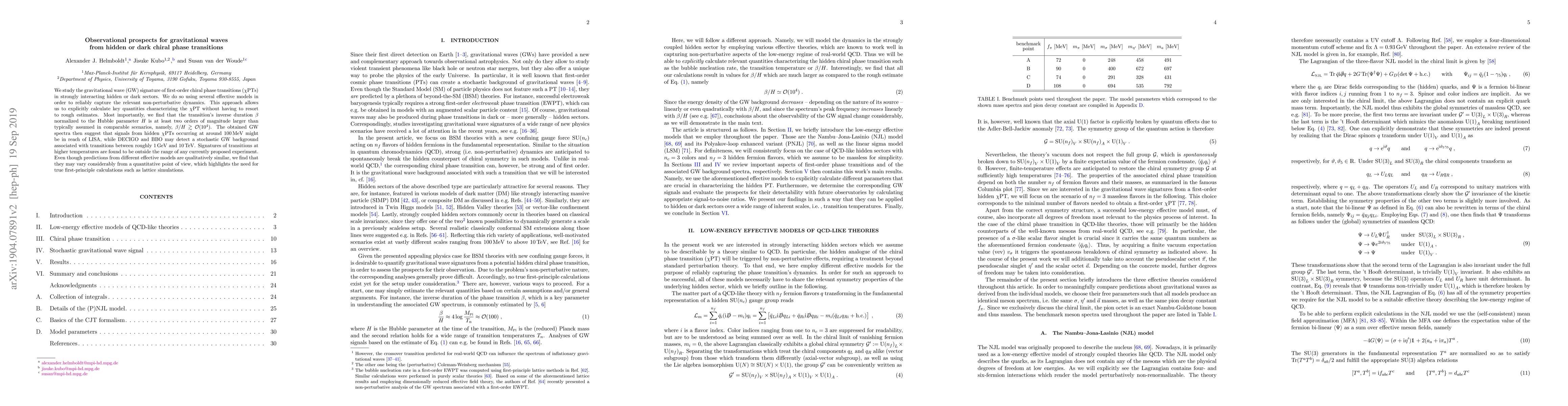 This paper investigates the gravitational wave (GW) signatures from first-order chiral phase transitions in hidden or dark sectors, finding that the transition's inverse duration is much larger than previously assumed, potentially detectable by LISA, DECIGO, and BBO. It emphasizes the need for precise calculations beyond effective models.