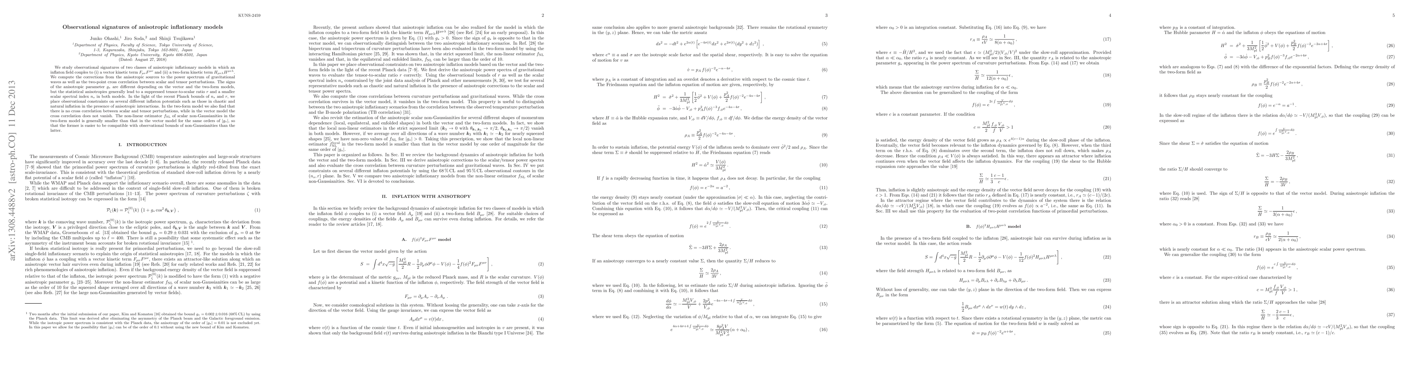 This paper investigates the observational signatures of anisotropic inflationary models with inflaton fields coupled to vector and two-form kinetic terms, finding that both models generally suppress the tensor-to-scalar ratio and scalar spectral index. The two-form model shows no cross-correlation between scalar and tensor perturbations and smaller scalar non-Gaussianities compared to the vector model, making it more compatible with observational constraints.