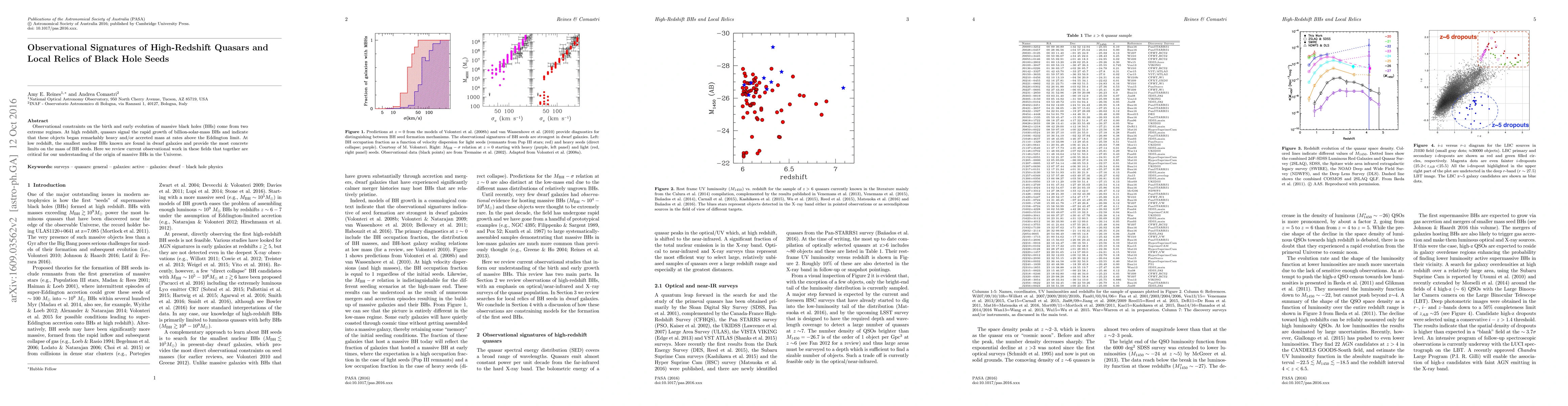 Observational constraints on the birth and early evolution of massive black holes (BHs) come from two extreme regimes. At high redshift, quasars signal the rapid growth of billion-solar-mass BHs and indicate that these objects began remarkably heavy and/or accreted mass at rates above the Eddington limit. At low redshift, the smallest nuclear BHs known are found in dwarf galaxies and provide the most concrete limits on the mass of BH seeds. Here we review current observational work in these fields that together are critical for our understanding of the origin of massive BHs in the Universe.