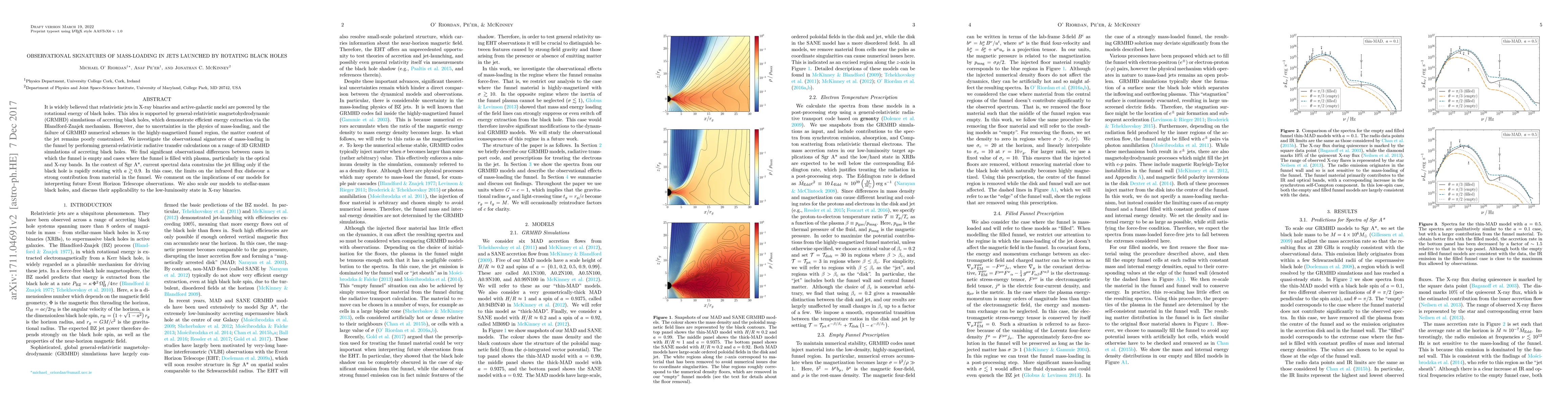 It is widely believed that relativistic jets in X-ray binaries and active-galactic nuclei are powered by the rotational energy of black holes. This idea is supported by general-relativistic magnetohydrodynamic (GRMHD) simulations of accreting black holes, which demonstrate efficient energy extraction via the Blandford-Znajek mechanism. However, due to uncertainties in the physics of mass-loading, and the failure of GRMHD numerical schemes in the highly-magnetized funnel region, the matter content of the jet remains poorly constrained. We investigate the observational signatures of mass-loading in the funnel by performing general-relativistic radiative transfer calculations on a range of 3D GRMHD simulations of accreting black holes. We find significant observational differences between cases in which the funnel is empty and cases where the funnel is filled with plasma, particularly in the optical and X-ray bands. In the context of Sgr A*, current spectral data constrains the jet filling only if the black hole is rapidly rotating with $a\gtrsim0.9$. In this case, the limits on the infrared flux disfavour a strong contribution from material in the funnel. We comment on the implications of our models for interpreting future Event Horizon Telescope observations. We also scale our models to stellar-mass black holes, and discuss their applicability to the low-luminosity state in X-ray binaries.