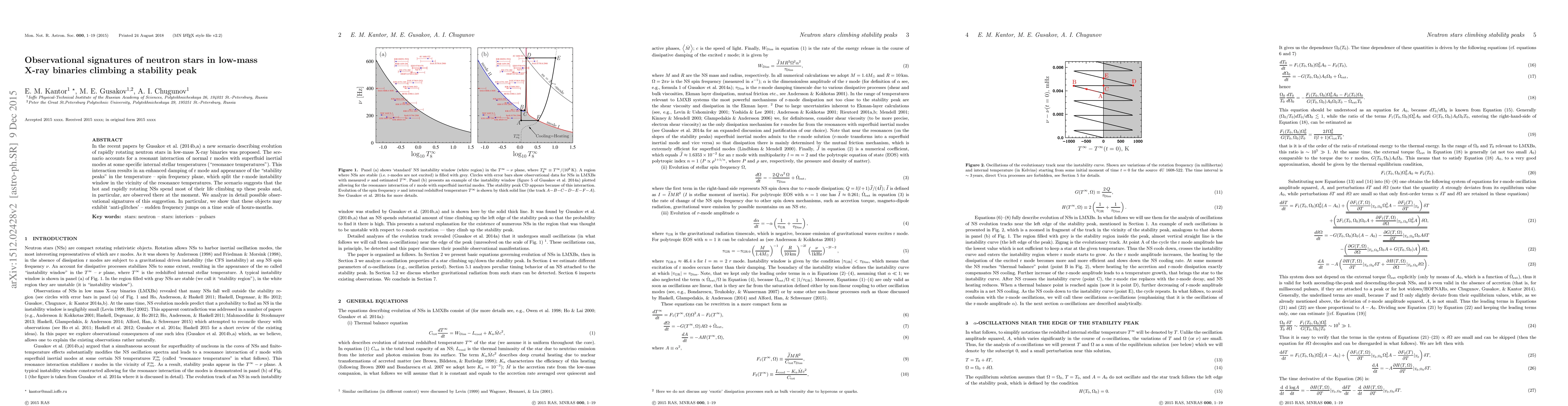 In the recent papers by Gusakov, Chugunov, and Kantor (2014) a new scenario describing evolution of rapidly rotating neutron stars in low-mass X-ray binaries was proposed. The scenario accounts for a resonant interaction of normal r modes with superfluid inertial modes at some specific internal stellar temperatures ("resonance temperatures"). This interaction results in an enhanced damping of r mode and appearance of the "stability peaks" in the temperature -- spin frequency plane, which split the r-mode instability window in the vicinity of the resonance temperatures. The scenario suggests that the hot and rapidly rotating NSs spend most of their life climbing up these peaks and, in particular, are observed there at the moment. We analyze in detail possible observational signatures of this suggestion. In particular, we show that these objects may exhibit `anti-glitches' -- sudden frequency jumps on a time scale of hours-months.