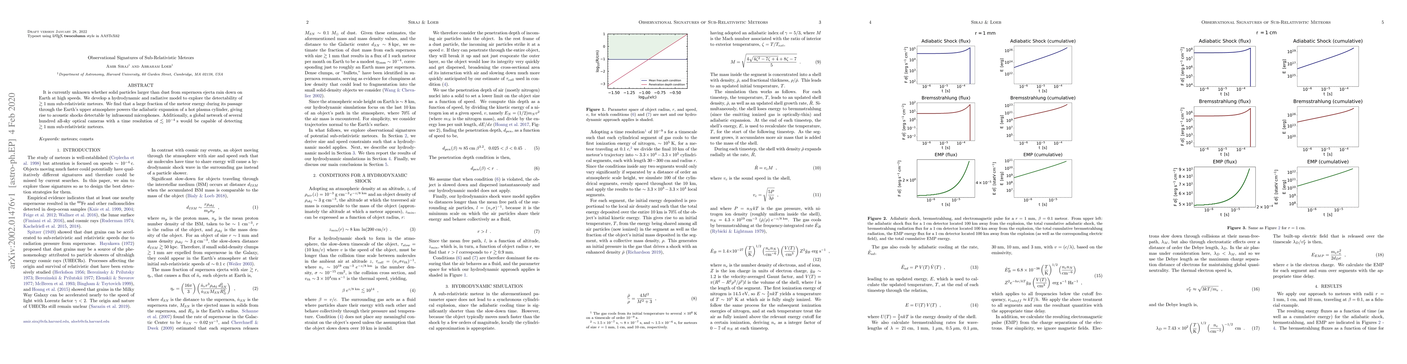 A new study finds that solid particles larger than dust from supernovae could create detectable acoustic shocks in the atmosphere and can be spotted using high-speed optical cameras. It suggests that a large fraction of meteor energy during its passage powers an expanding plasma cylinder.
