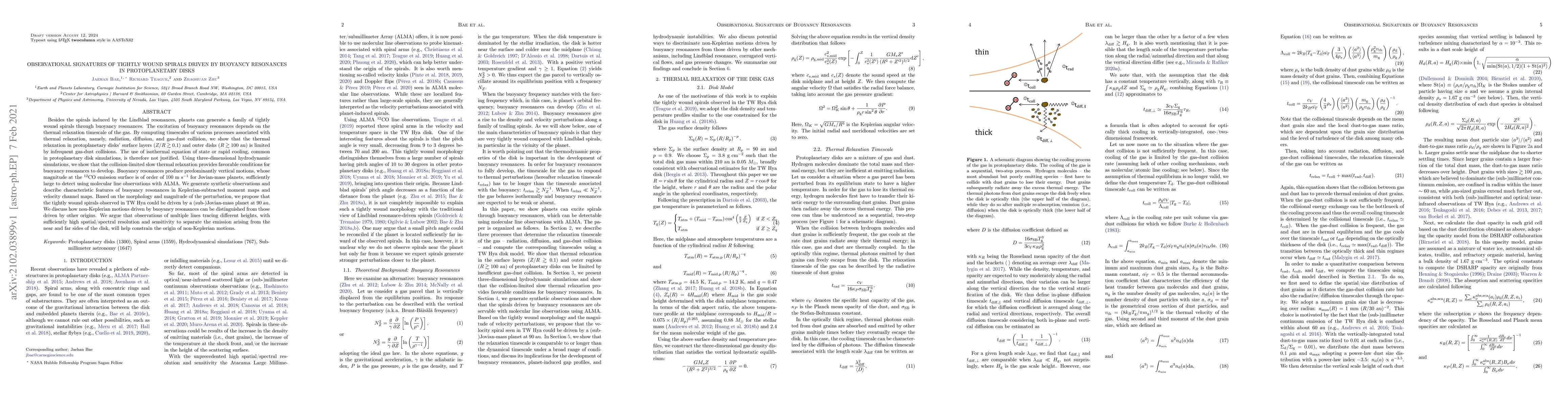 This paper investigates tightly wound spirals in protoplanetary disks driven by buoyancy resonances, showing that infrequent gas-dust collisions limit thermal relaxation. It suggests that buoyancy resonances can produce detectable vertical motions and proposes that observed spirals in TW Hya may be caused by a (sub-)Jovian-mass planet at 90 au, emphasizing the need for high-resolution observations to distinguish these resonances from other non-Keplerian motions.